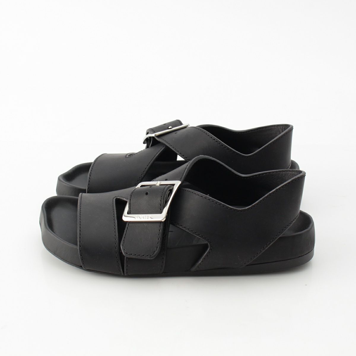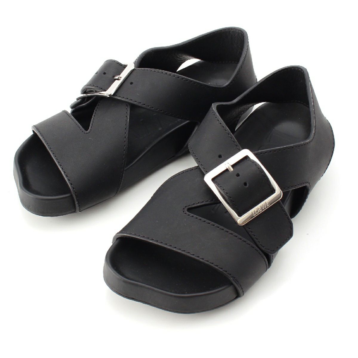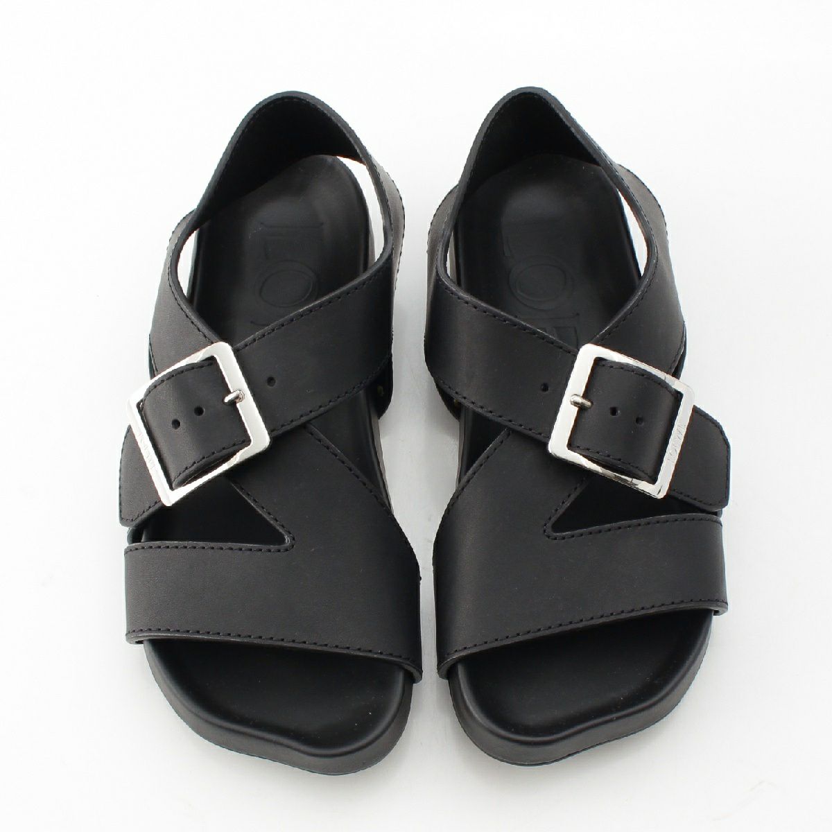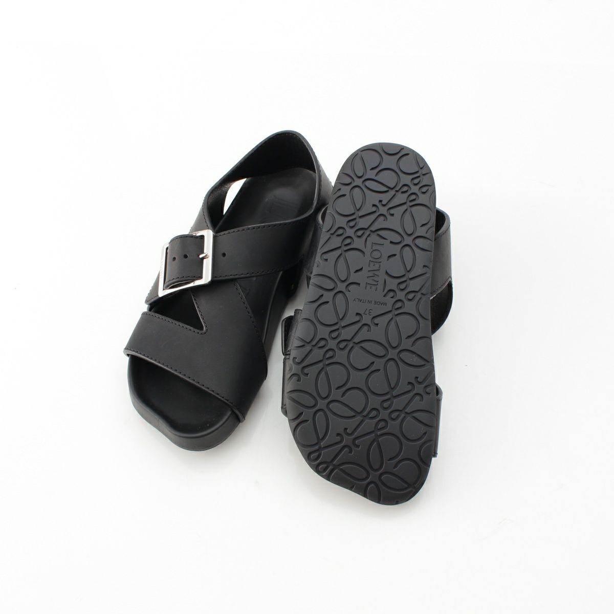 ロエベ ベジタルカーフ イーズ バックル フラット サンダル ブラック 37