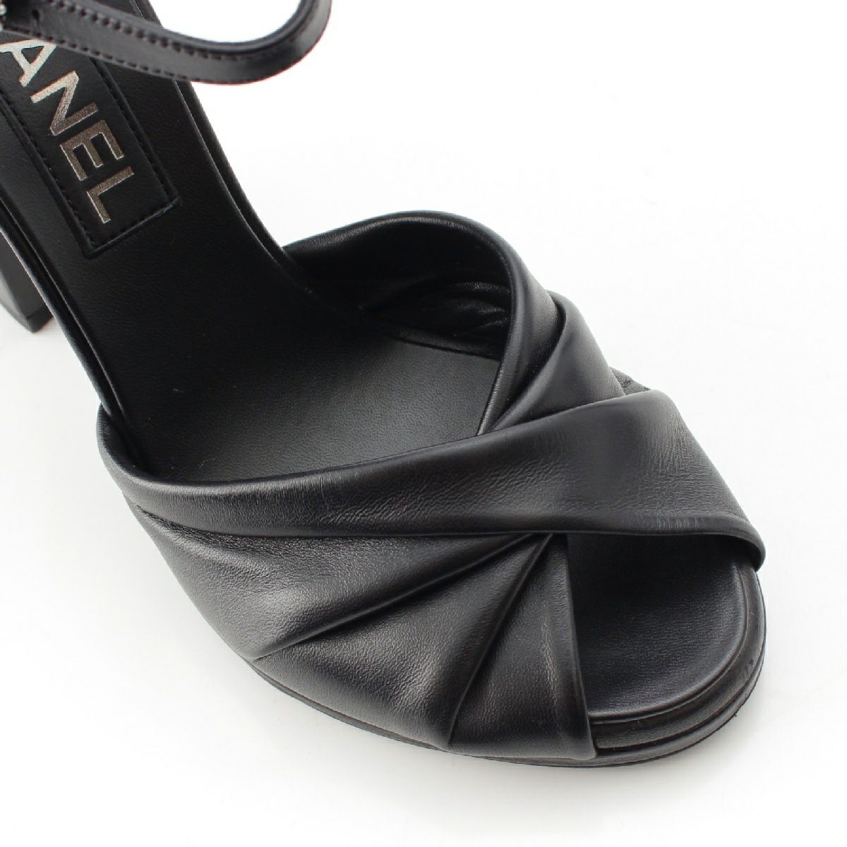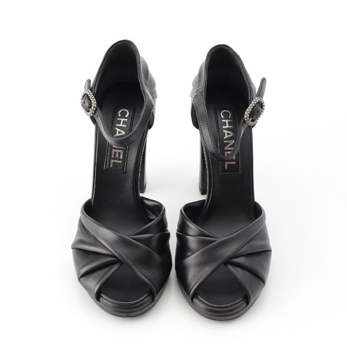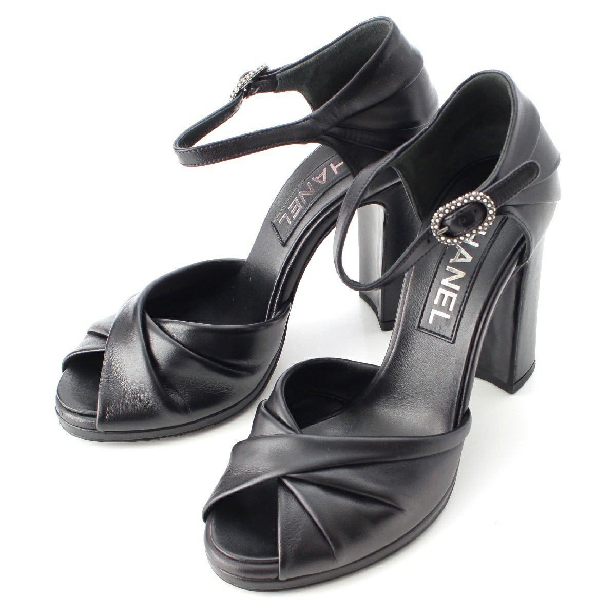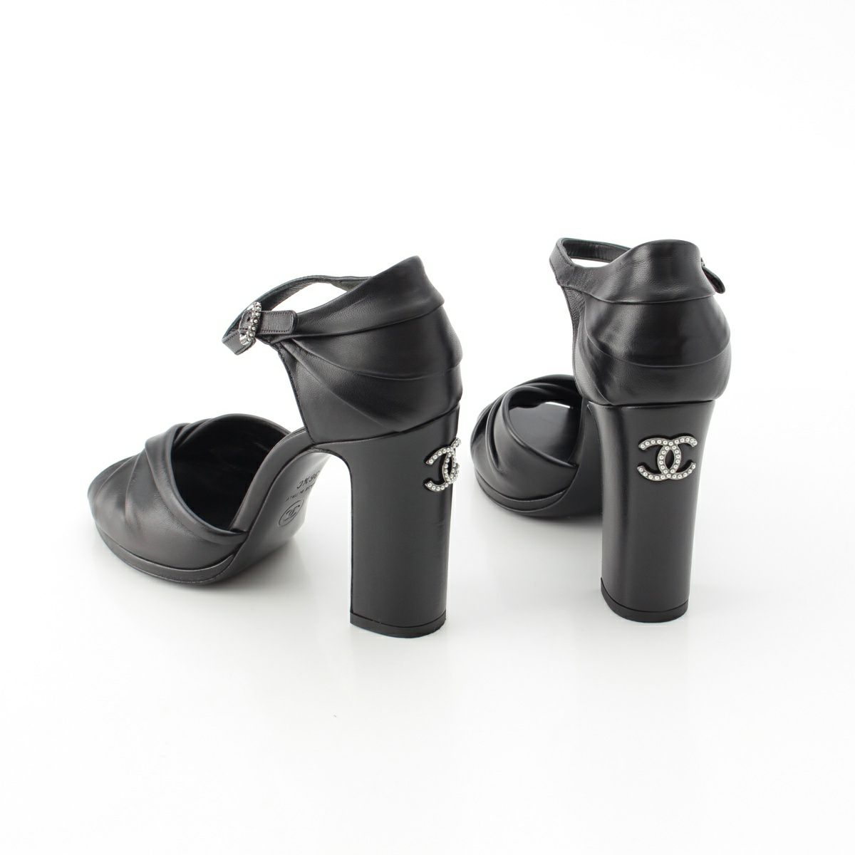 シャネル カーフスキン ココマーク パール ストラップ ヒール サンダル オープントゥパンプス G39968 ブラック 38