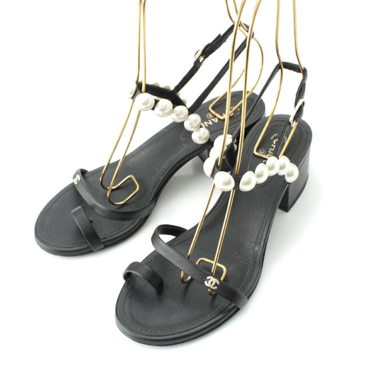 シャネル 21P レザー ココマーク パール ストラップ サンダル G37272 ブラック 36C