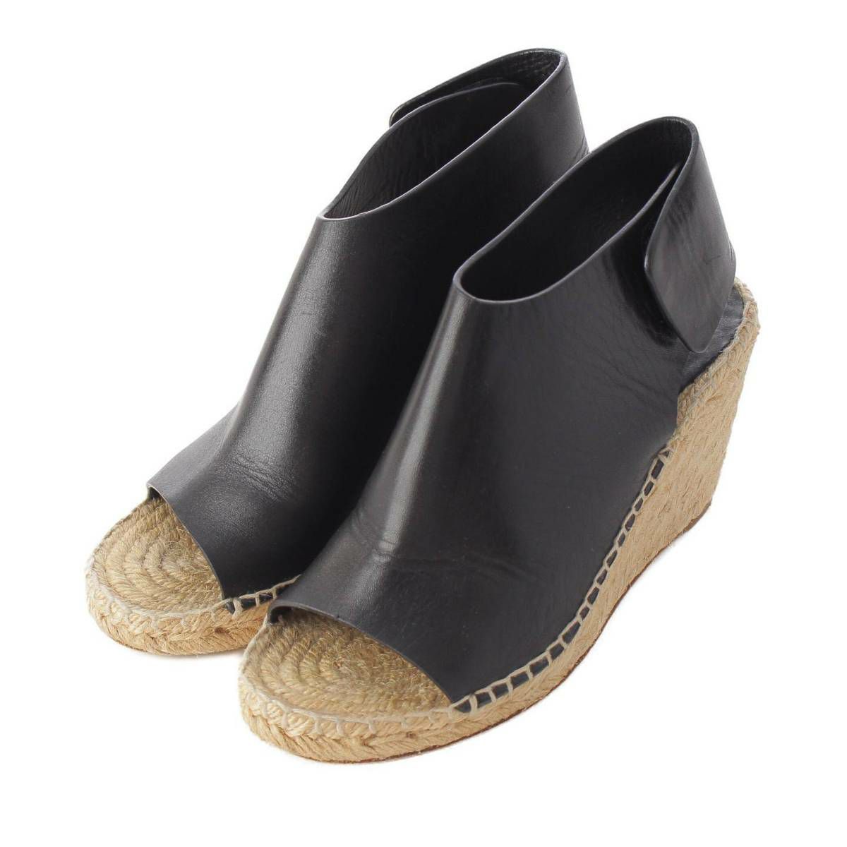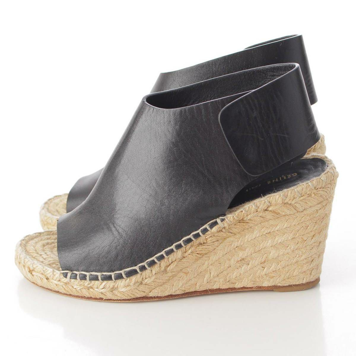 セリーヌ フィービー期 エスパドリーユ ウェッジソール レザー サンダル ブラック 35