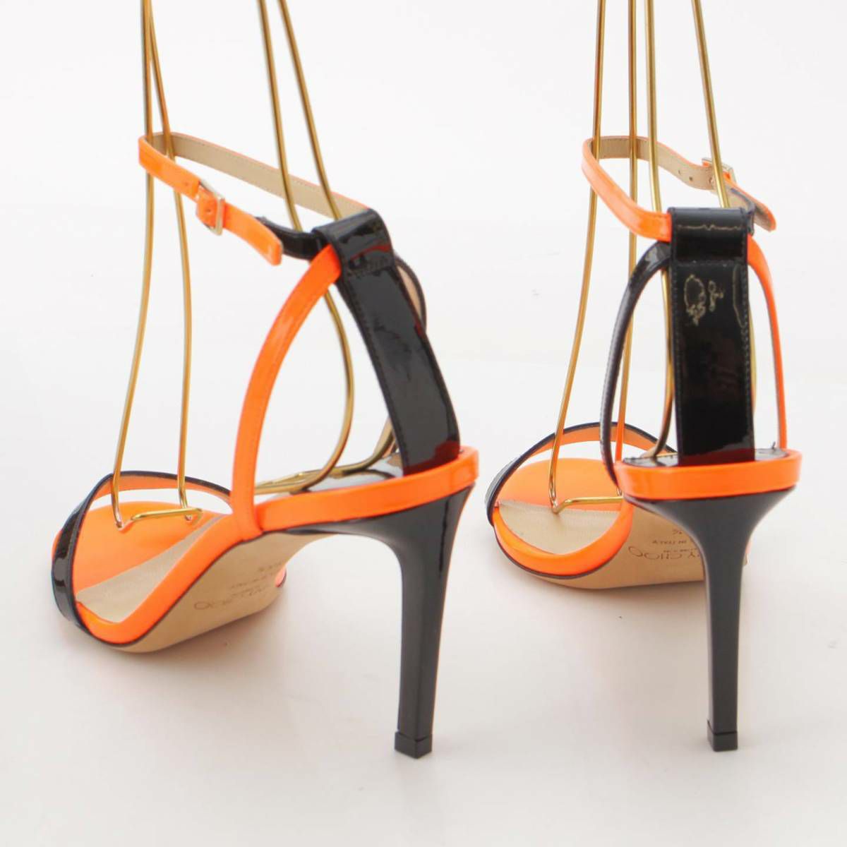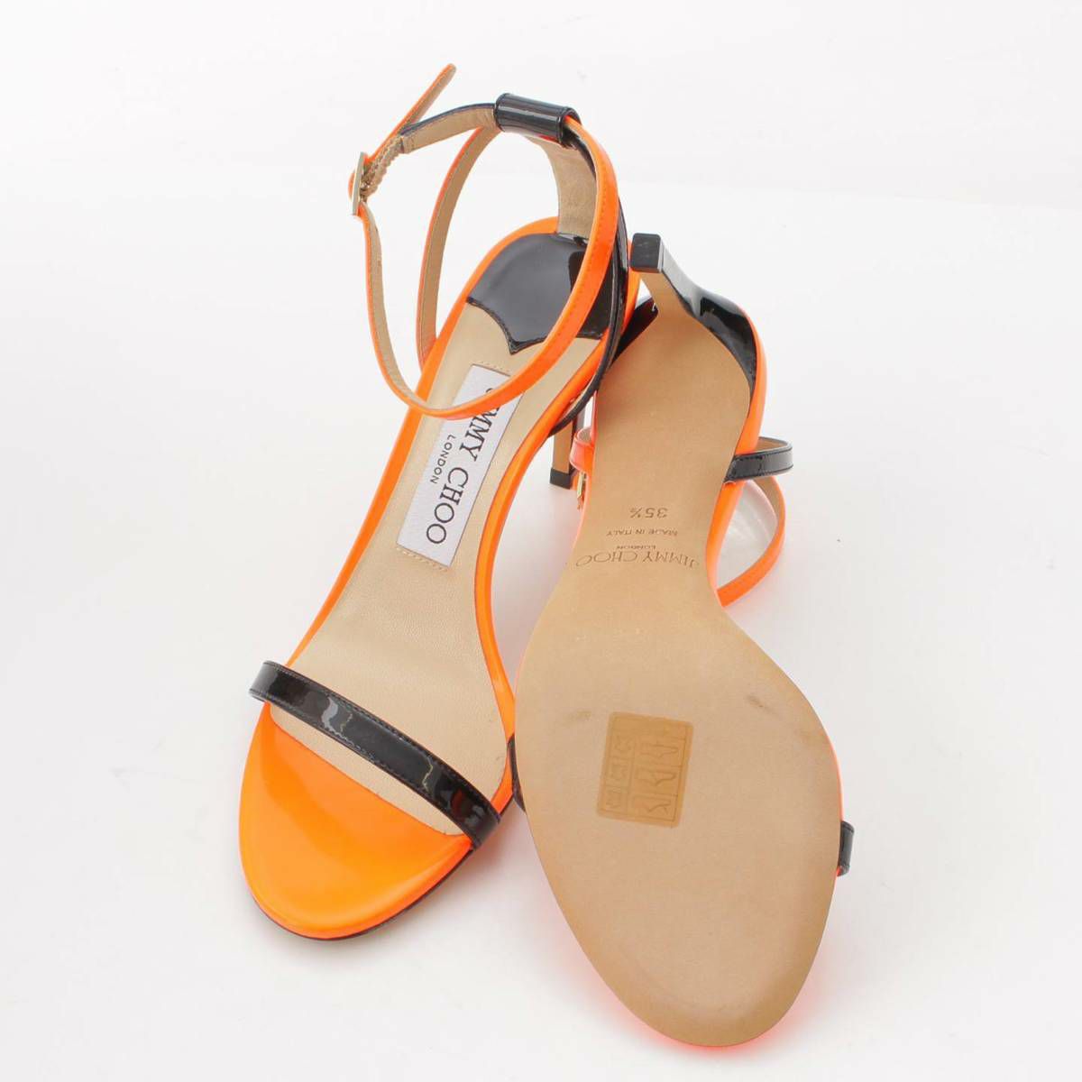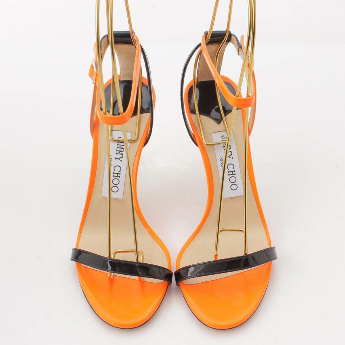 ジミーチュウ Jimmy Choo MINNT85 パテント ストラップ ヒールサンダル オレンジ×ブラック 35 1/2
