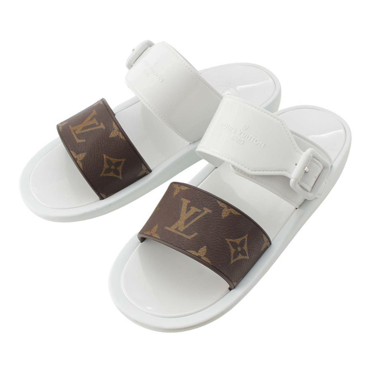 ルイヴィトン サンバスライン モノグラム ラバー フラットサンダル 1A66WY ホワイト ブラウン 36