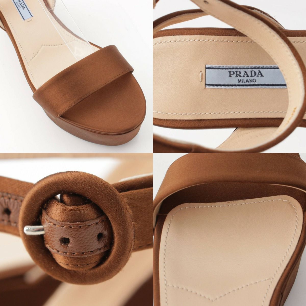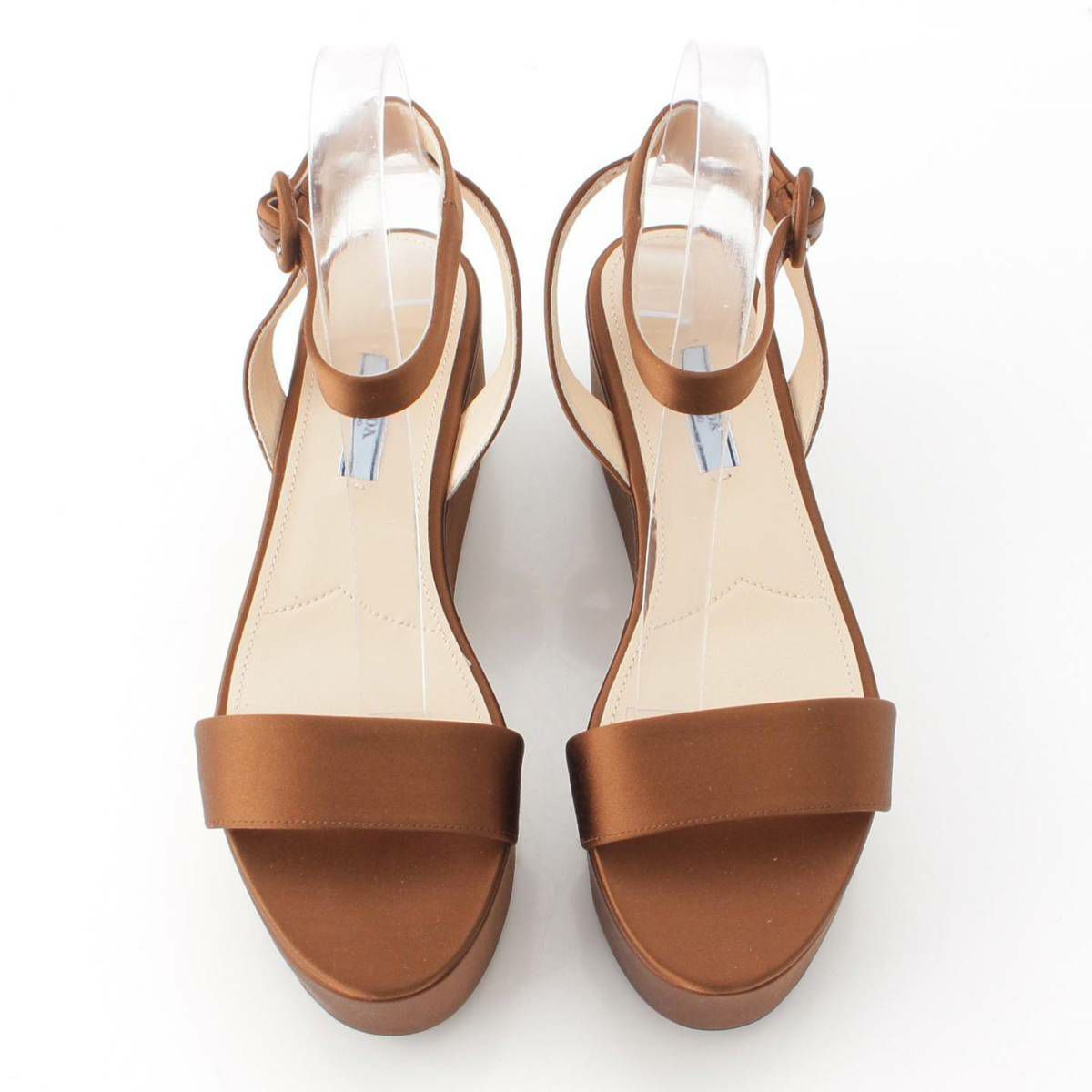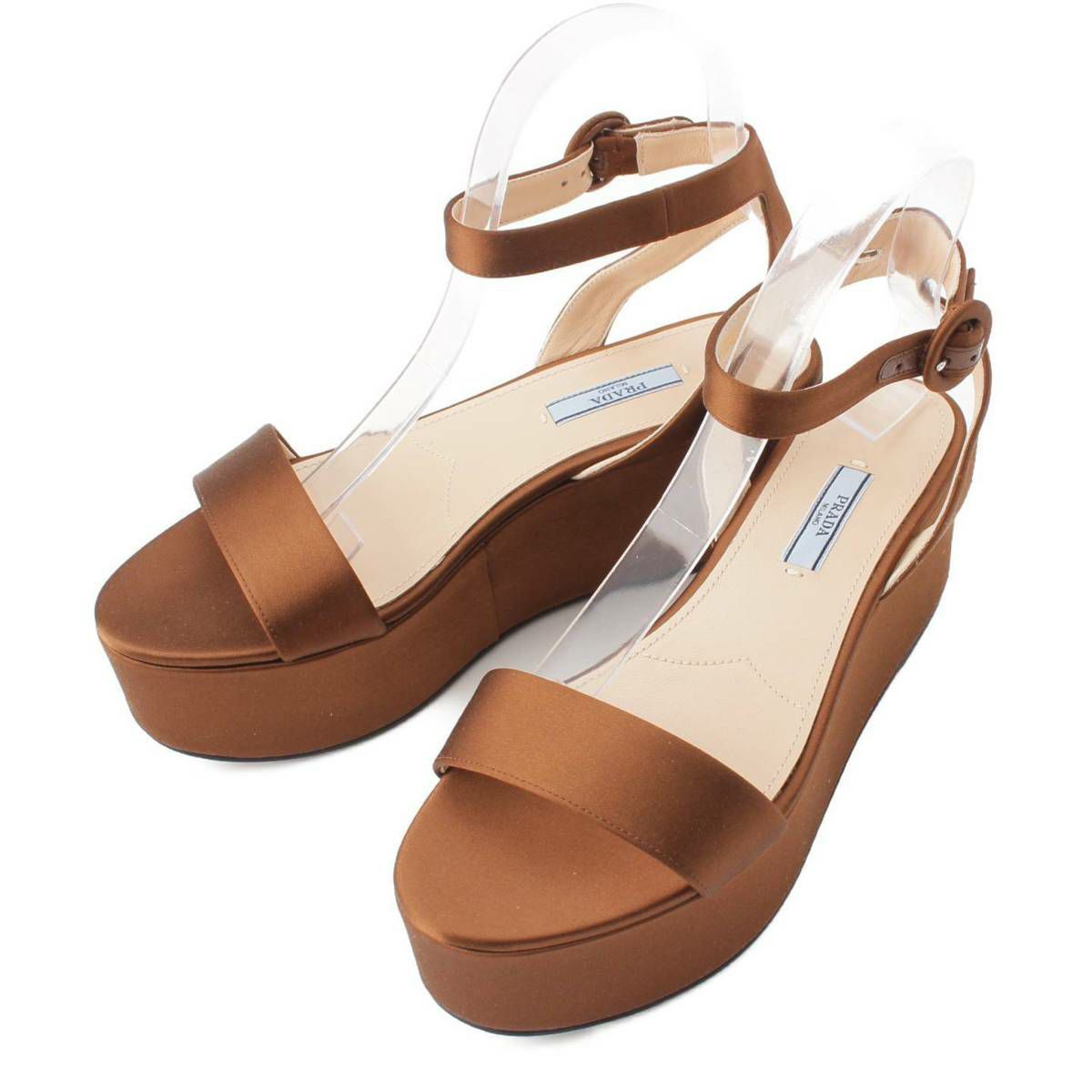 プラダ CALZATURE DONNA サテン アンクルストラップ ウェッジサンダル ブラウン 38 1/2
