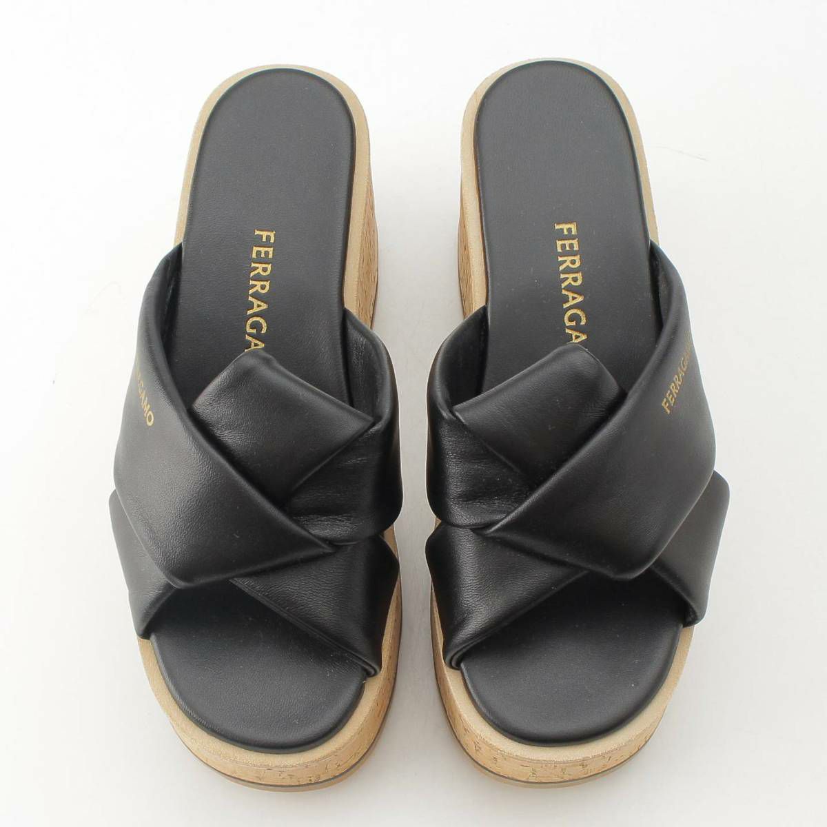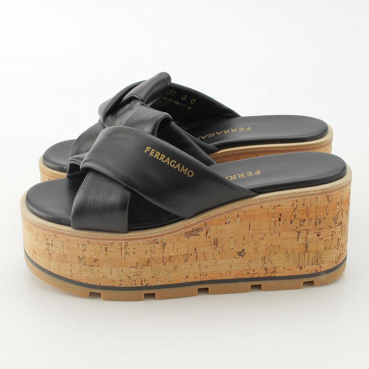 サルバトーレフェラガモ Salvatore Ferragamo 24SS ENGRACIA サンダル ウェッジ コルクソール レザー 771936 ブラック 6