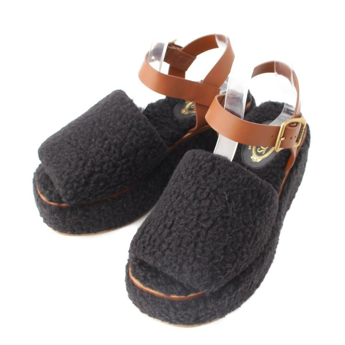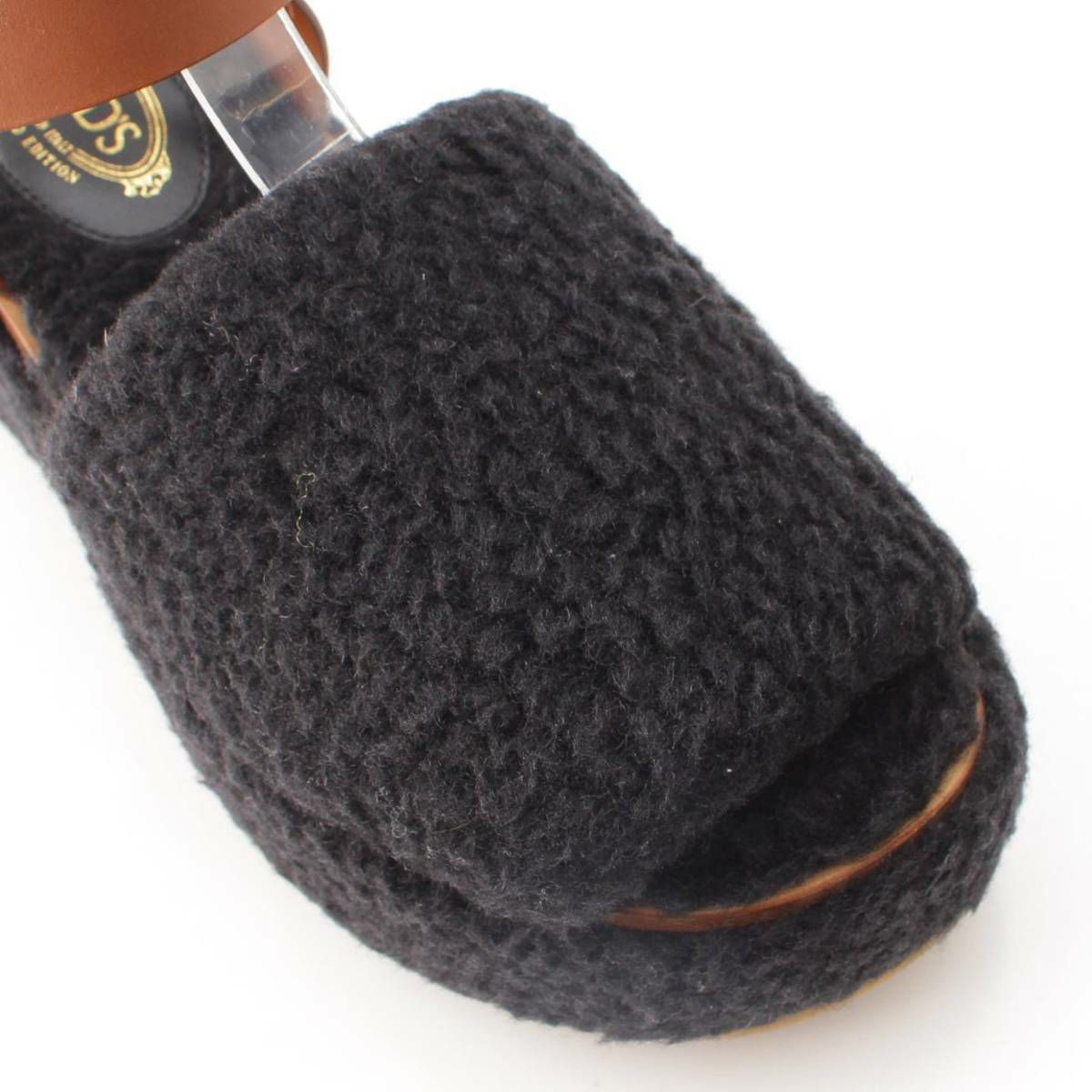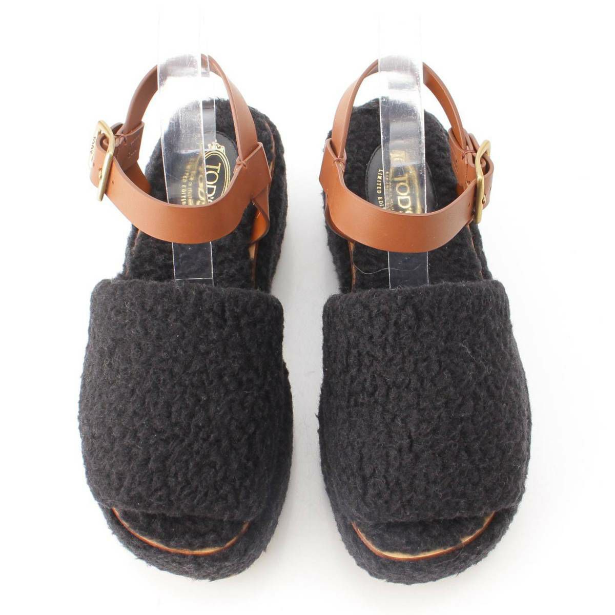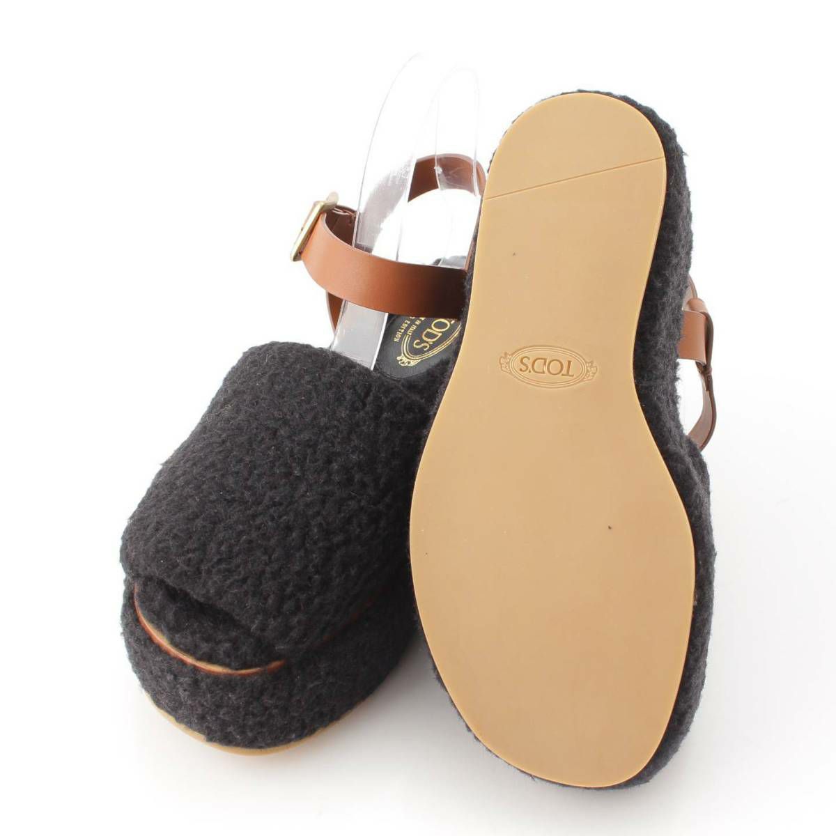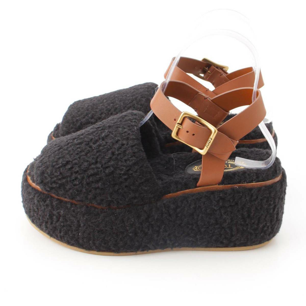 トッズ ムートン 厚底 ストラップ サンダル ブラック×ブラウン 37