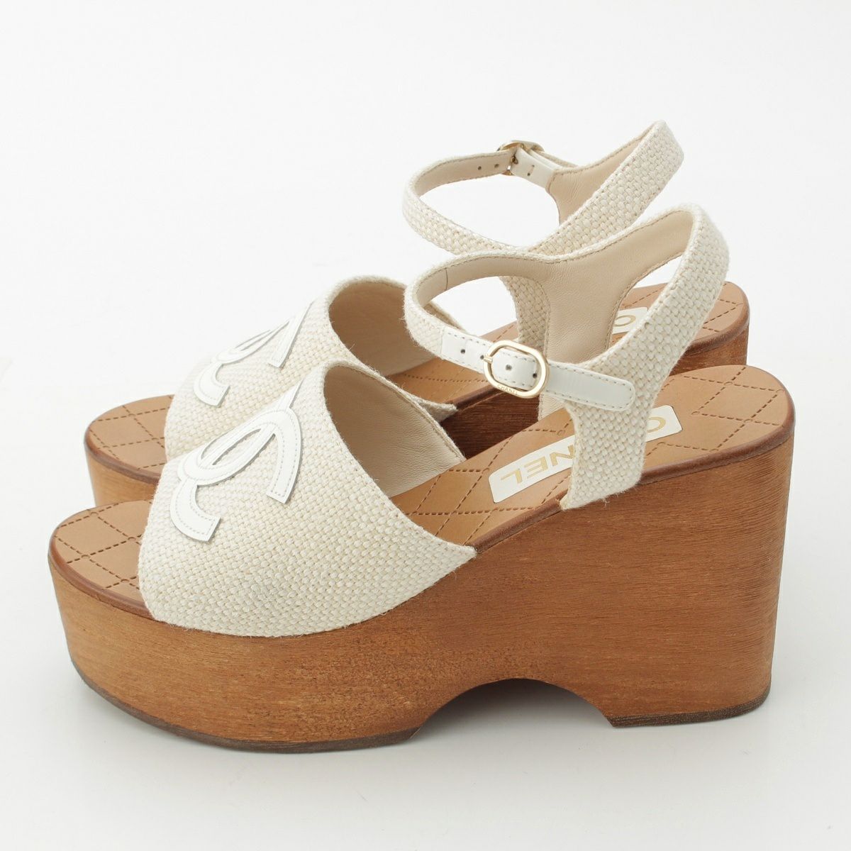 他の画像を見る CHANEL シャネル 24P ウッド ウッドソール プラットフォーム キャンバス ココマーク サンダル G45555 ホワイト ブラウン系 39c 在庫切れ お気に入りに登録する 当店特別価格 ¥ 99,000 税込 円 90,000円