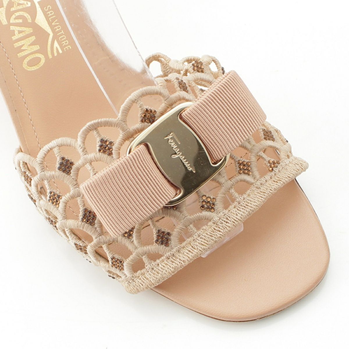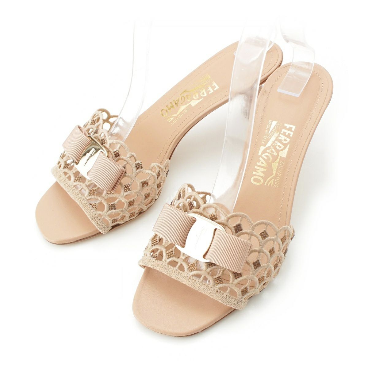 他の画像を見る Salvatore Ferragamo サルヴァトーレフェラガモ ヴァラ金具 ヴァラリボン レース ミュール サンダル GC 18811 ピンクベージュ 8 1/2 在庫切れ お気に入りに登録する 当店特別価格 ¥ 13,200 税込 円 12,000円