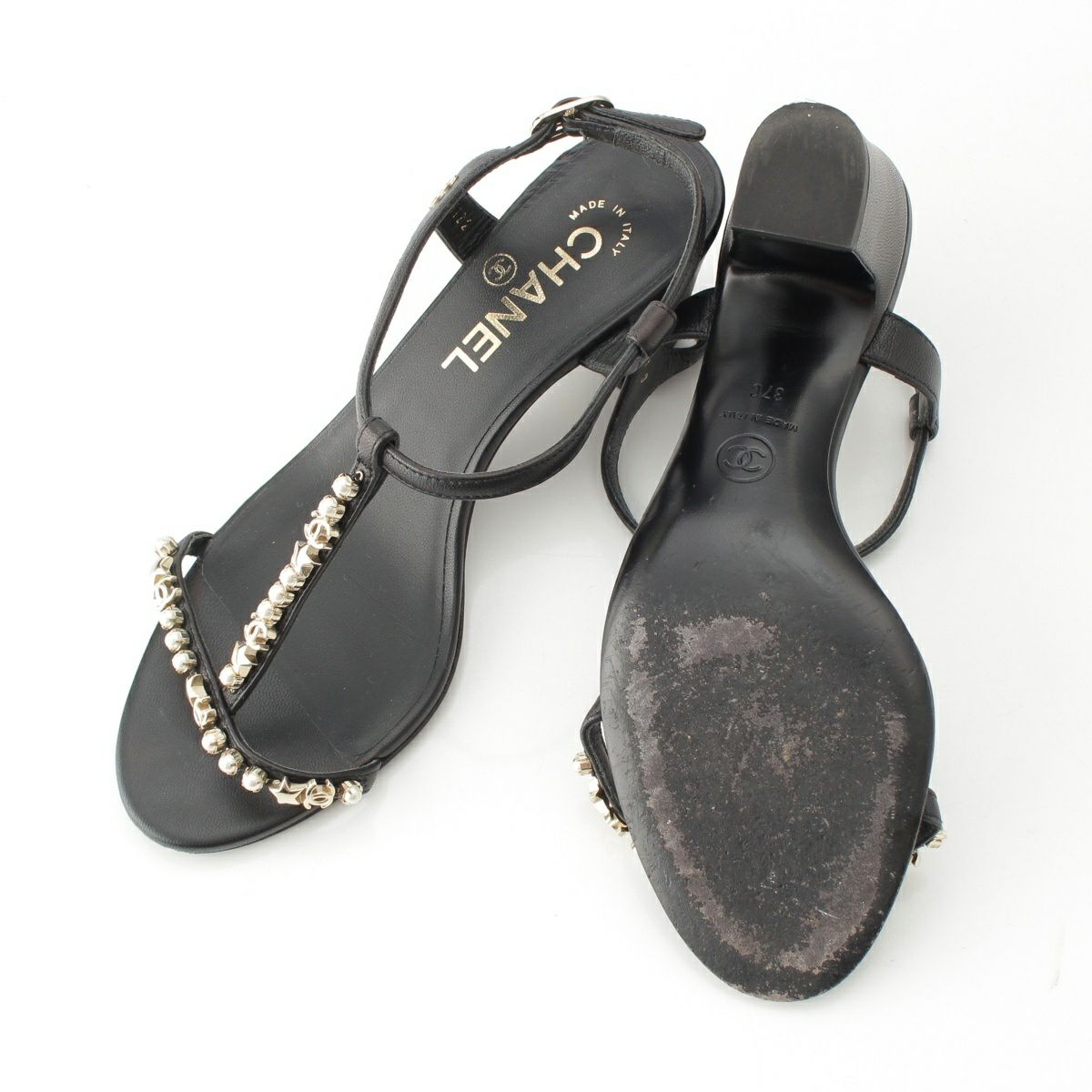 他の画像を見る CHANEL シャネル ココマーク ビジュー ストラップ ヒール サンダル シューズ G36122 ブラック 39C 在庫切れ お気に入りに登録する 当店特別価格 ¥ 55,000 税込 円 50,000円