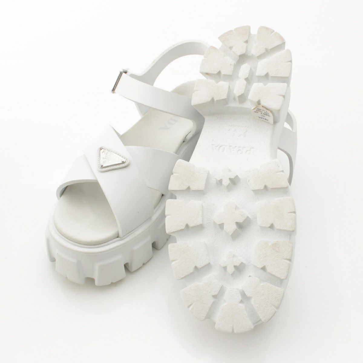 他の画像を見る PRADA プラダ モノリス ラバー トライアングルロゴ 三角プレート プラットフォーム サンダル ストラップ 厚底 ホワイト シルバー 39 在庫切れ お気に入りに登録する 当店通常価格 ¥ 59,400 のところ 当店特別価格 ¥ 49,500 税込 54,000円 45,000円