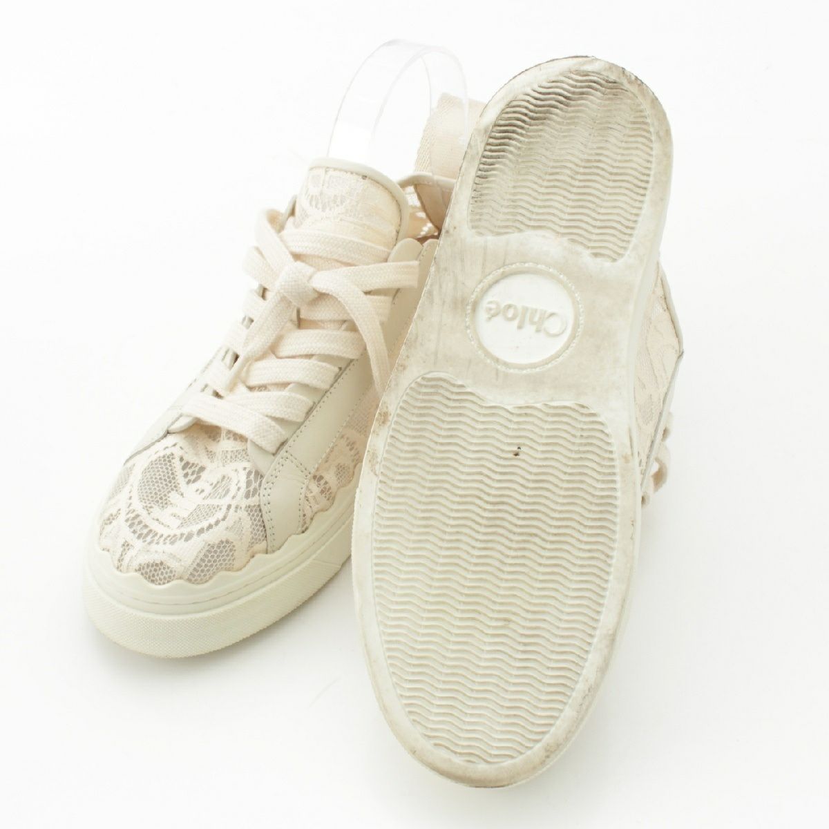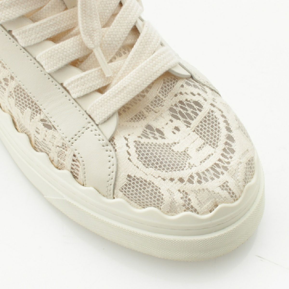 クロエ LAUREN コットン カーフスキン レース ローカット スニーカー ナイロンループ ロゴ ラウンドトゥ アイボリー ホワイト系 38