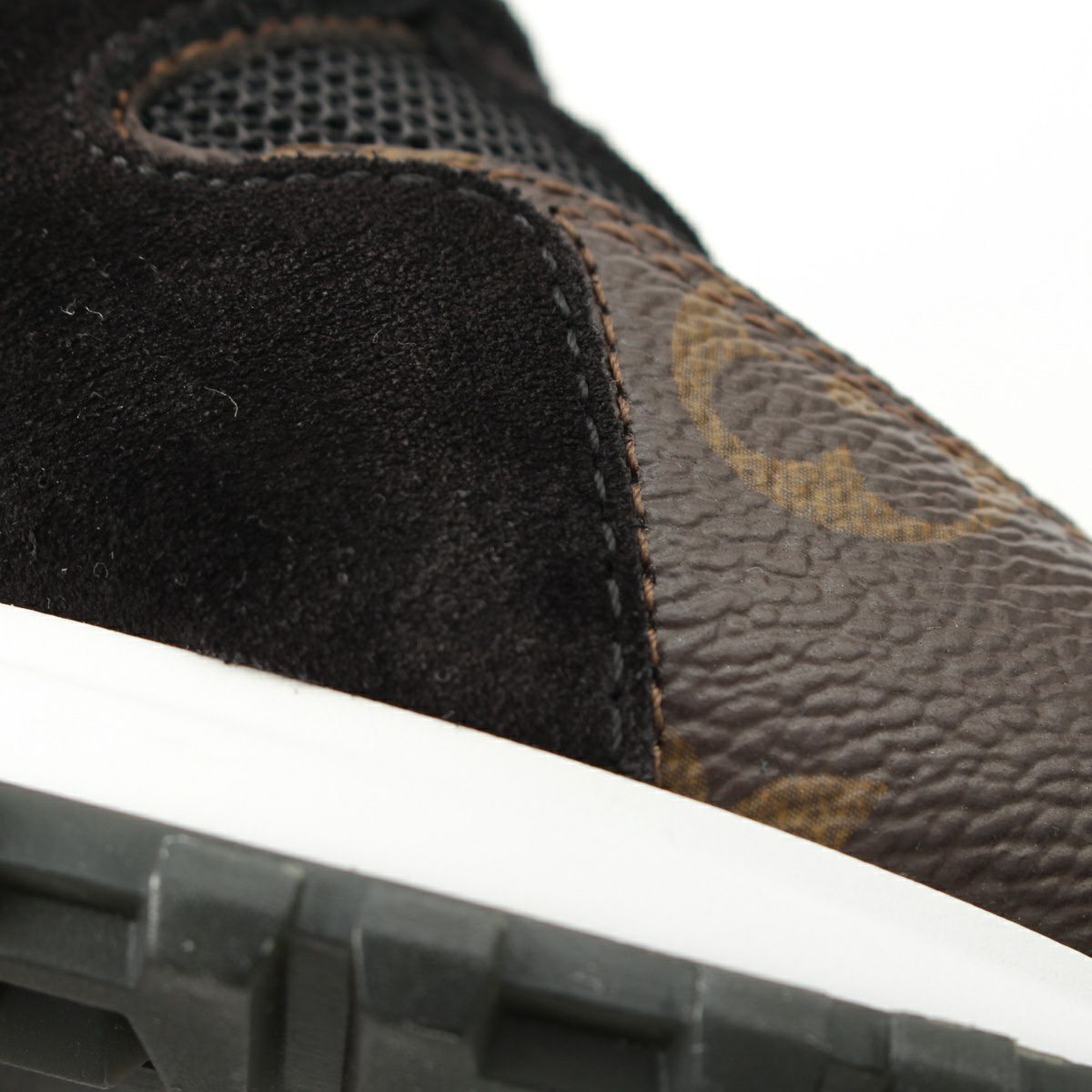 ルイヴィトン 21年 メッシュ レザー ランアウェイ ロゴ スニーカー ブラック ブラウン 36