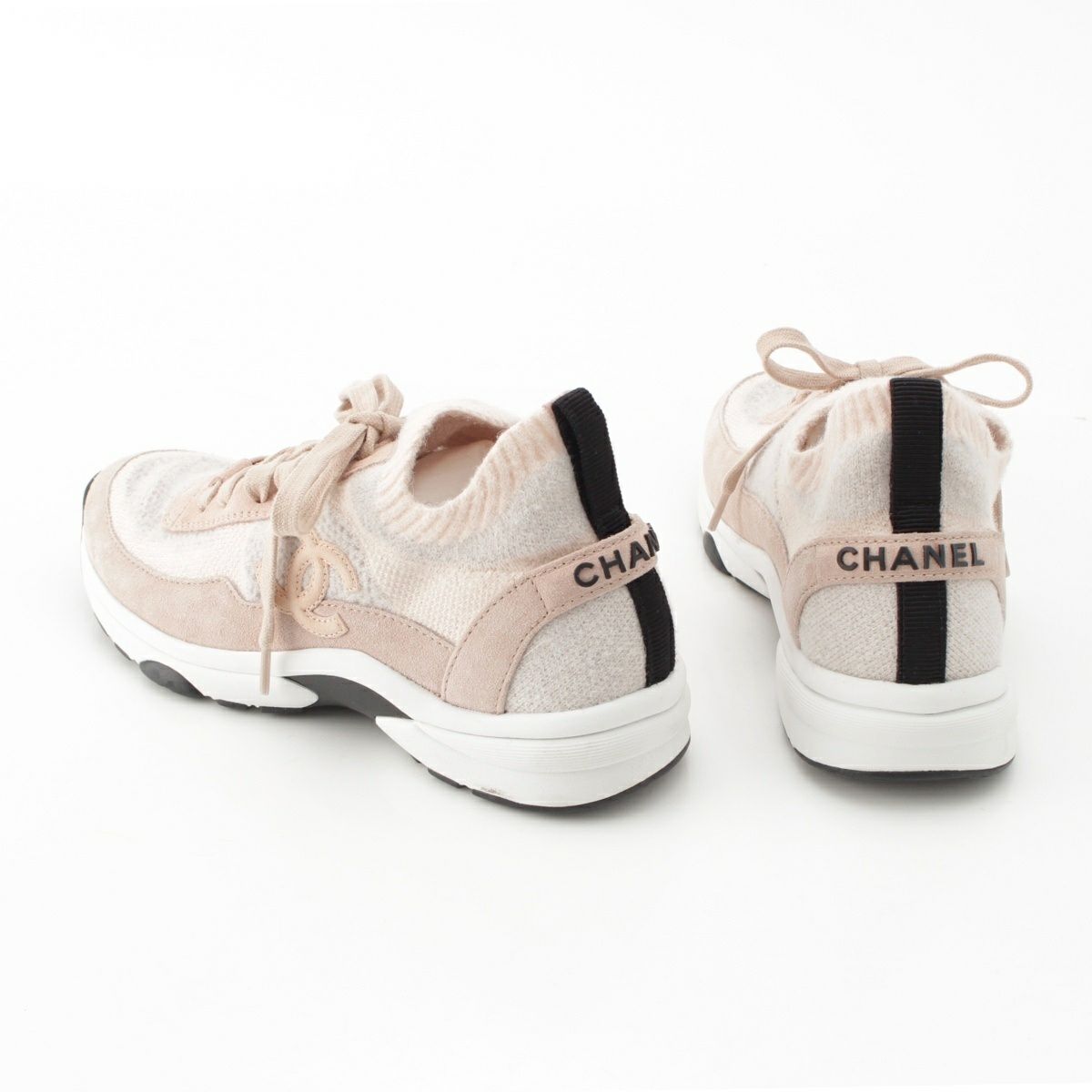 シャネル 23B ココマーク ニット ソックス スニーカー シューズ G38750 ピンク 36