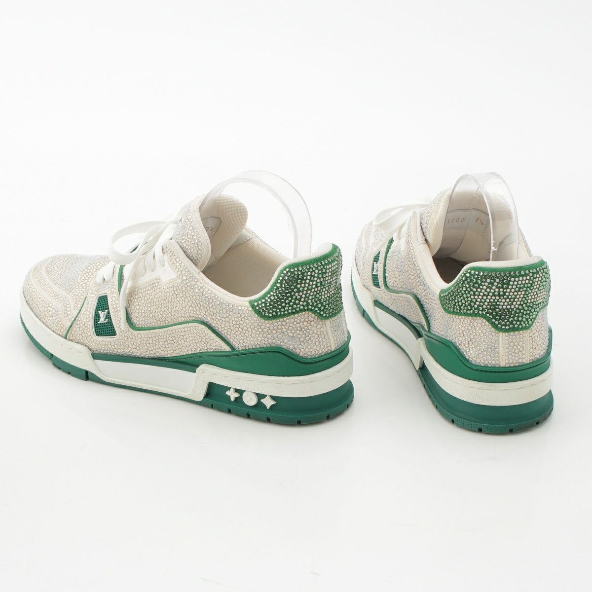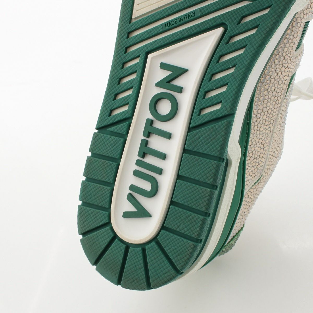 ルイヴィトン Crystal-Covered LVトレイナー ラインストーン ローカット スニーカー シューズ グリーン×ホワイト 7 1/2