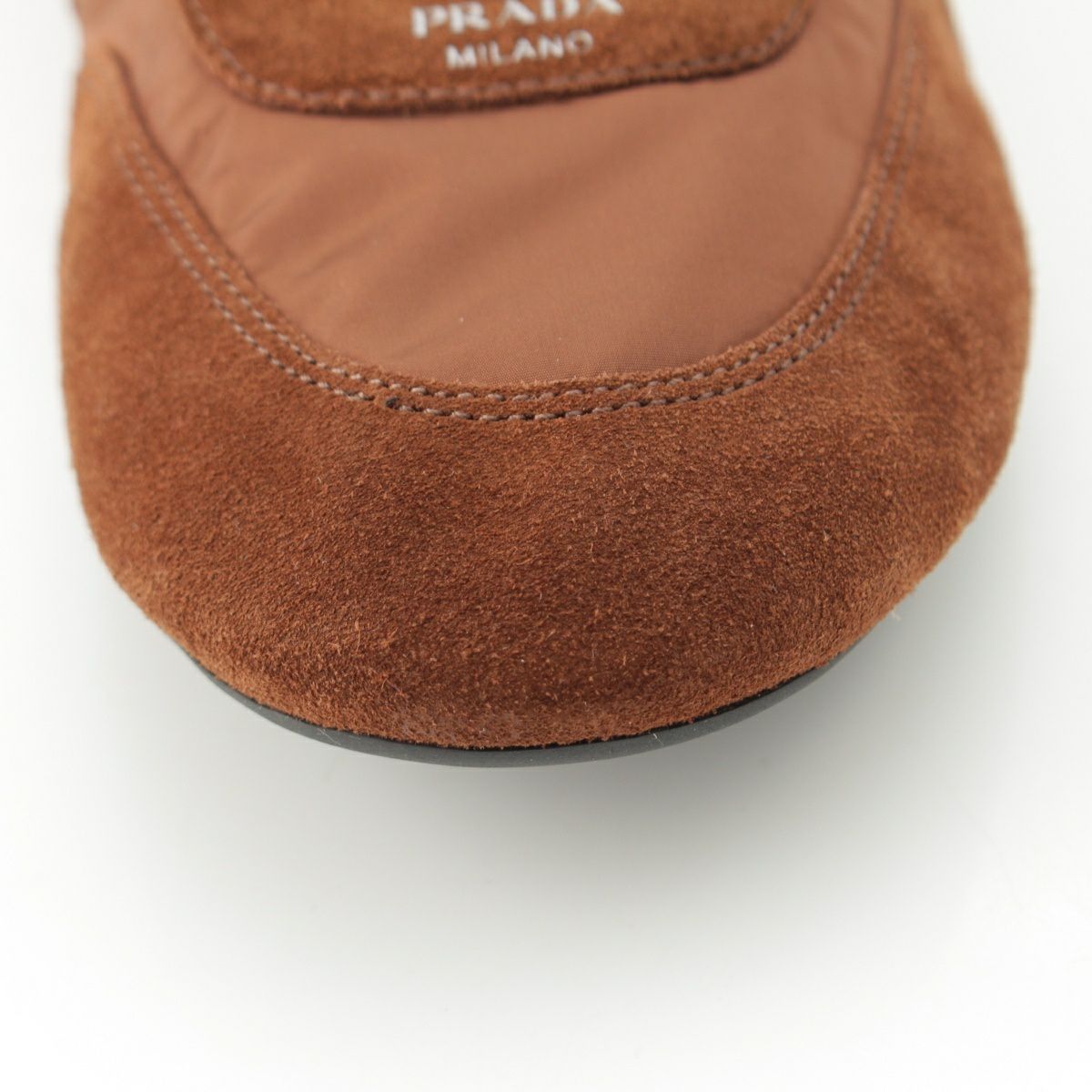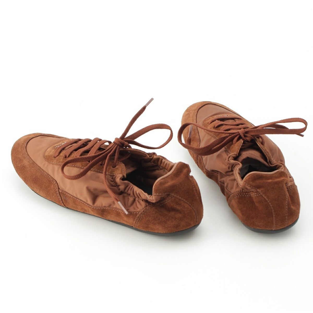プラダ コラプス re-nylon スウェード ロートップ スニーカー シューズ 1E959N ブラウン 37 1/2