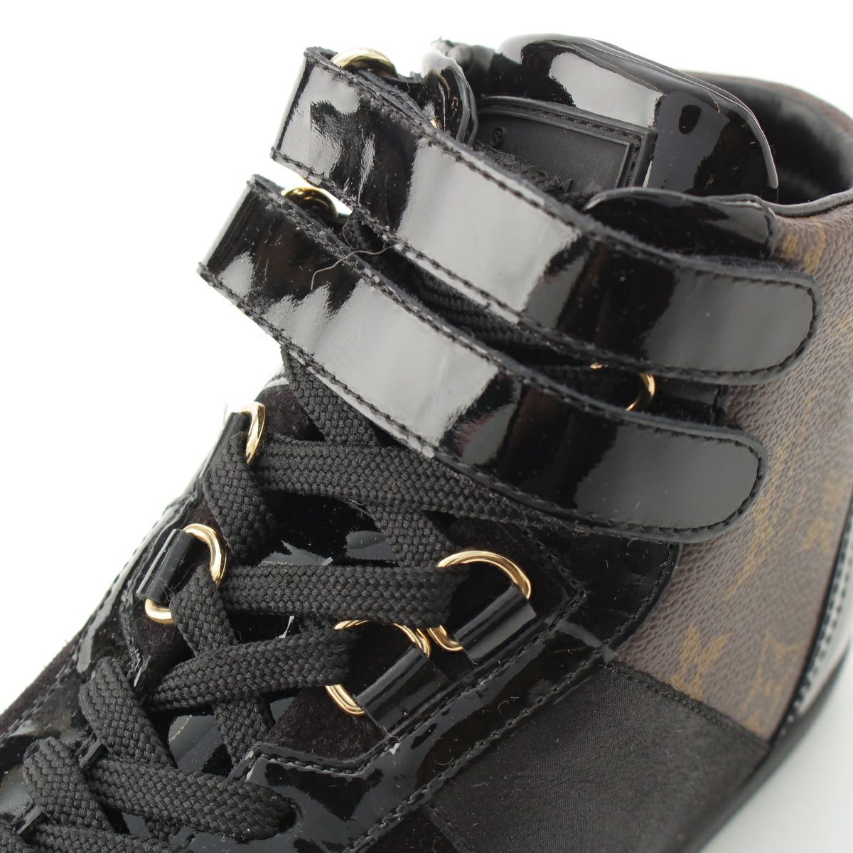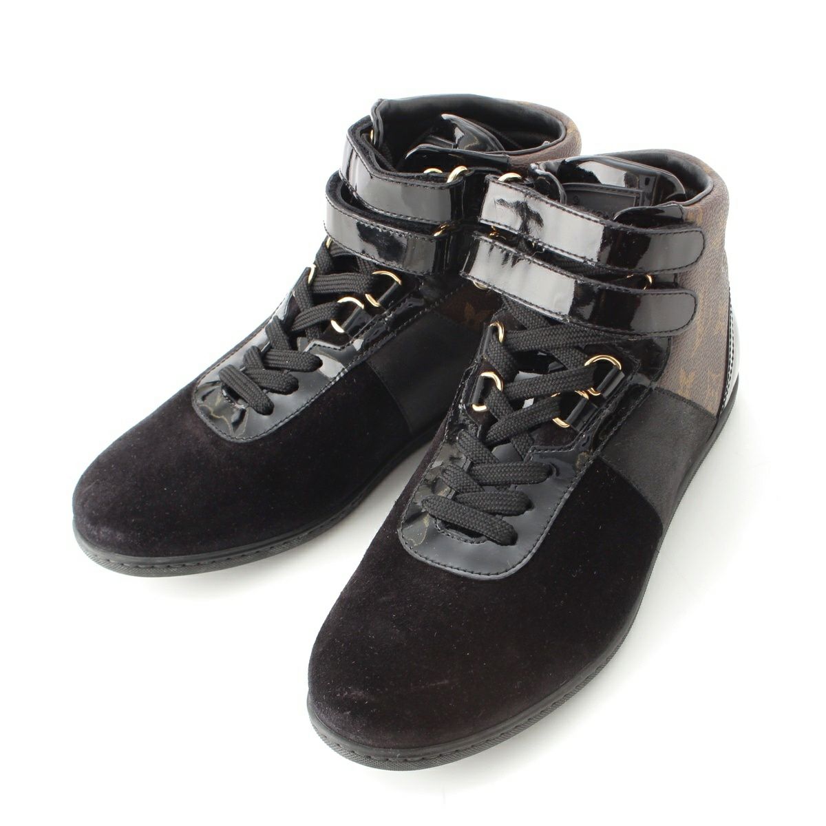 ルイヴィトン 14年 スエード パテント モノグラム ハイカット スニーカー シューズ GO0194 ブラック 36