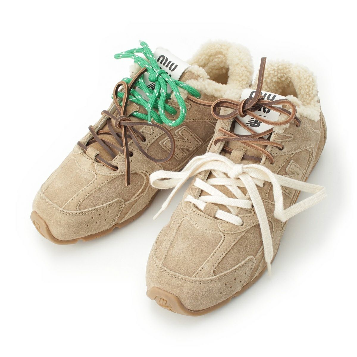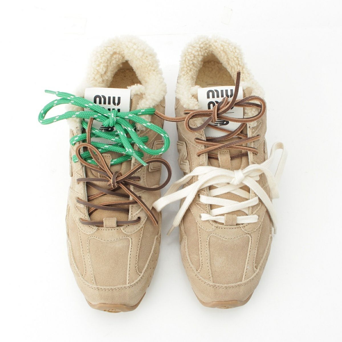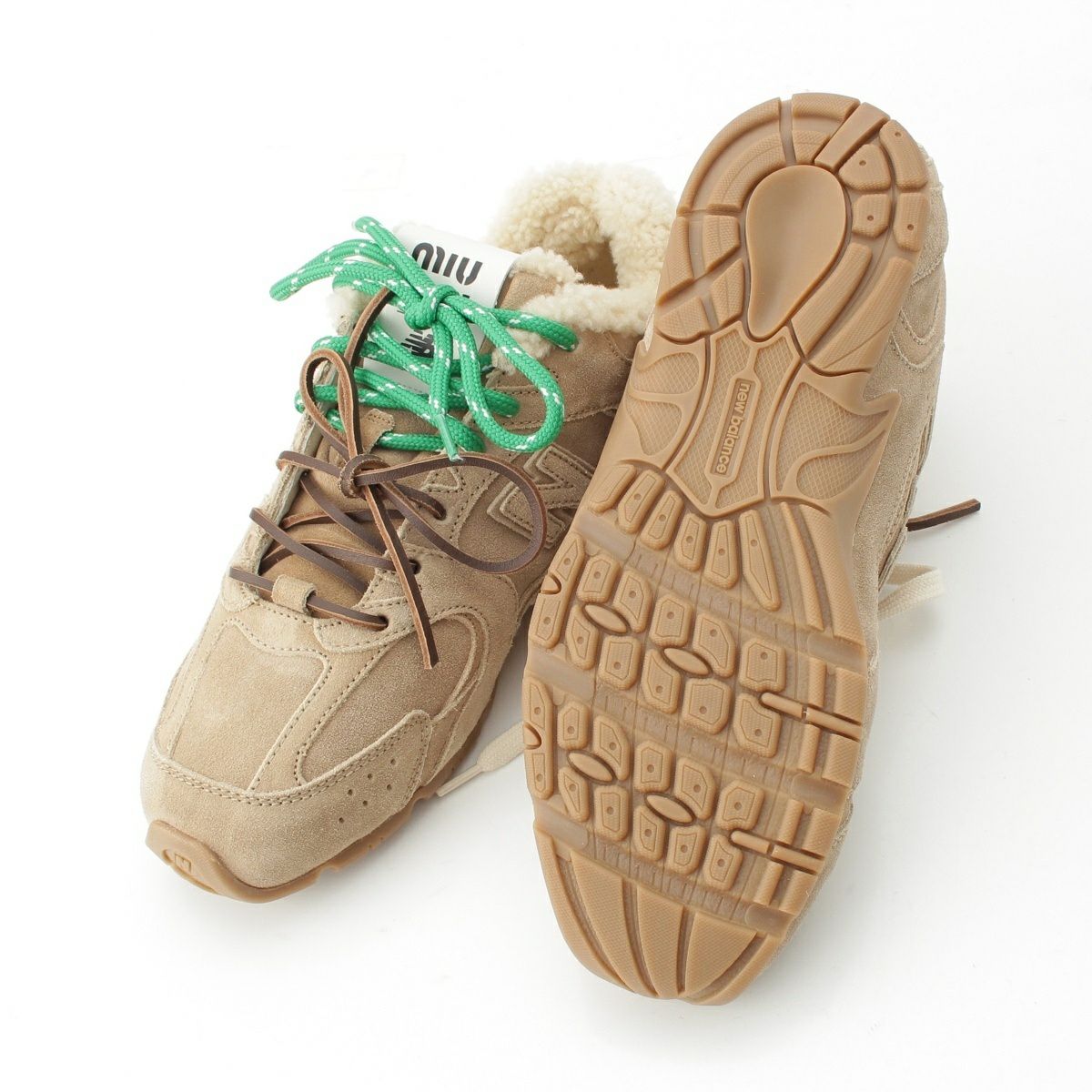 ミュウミュウ ニューバランス 25AW 530SL スウェード ボア ブリーチドレザー レースアップ スニーカー シューズ ベージュ 38