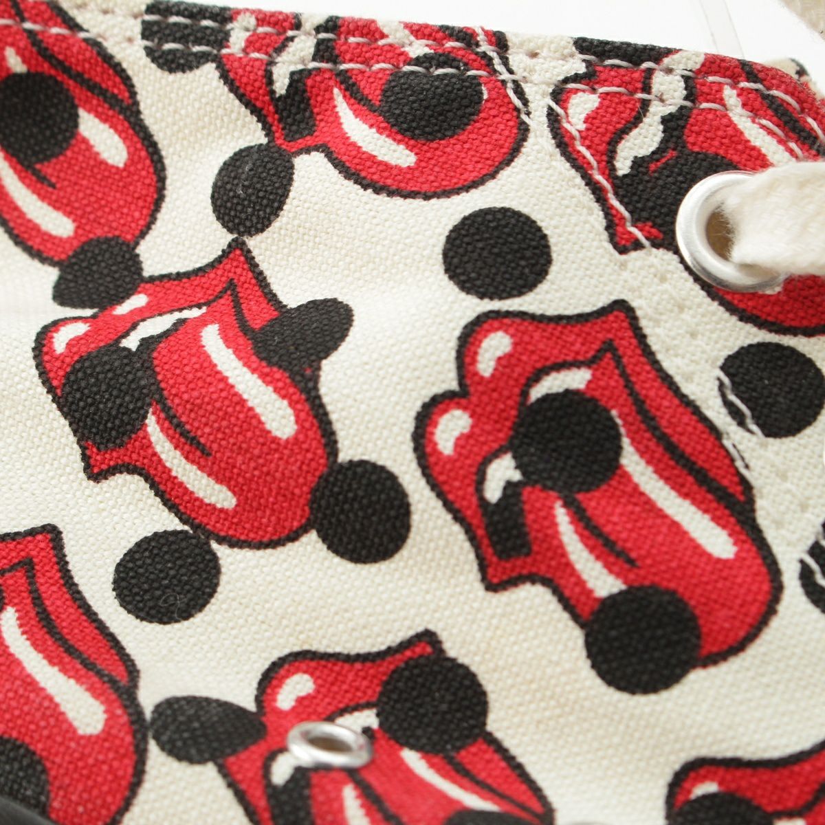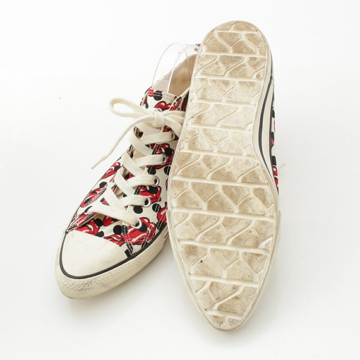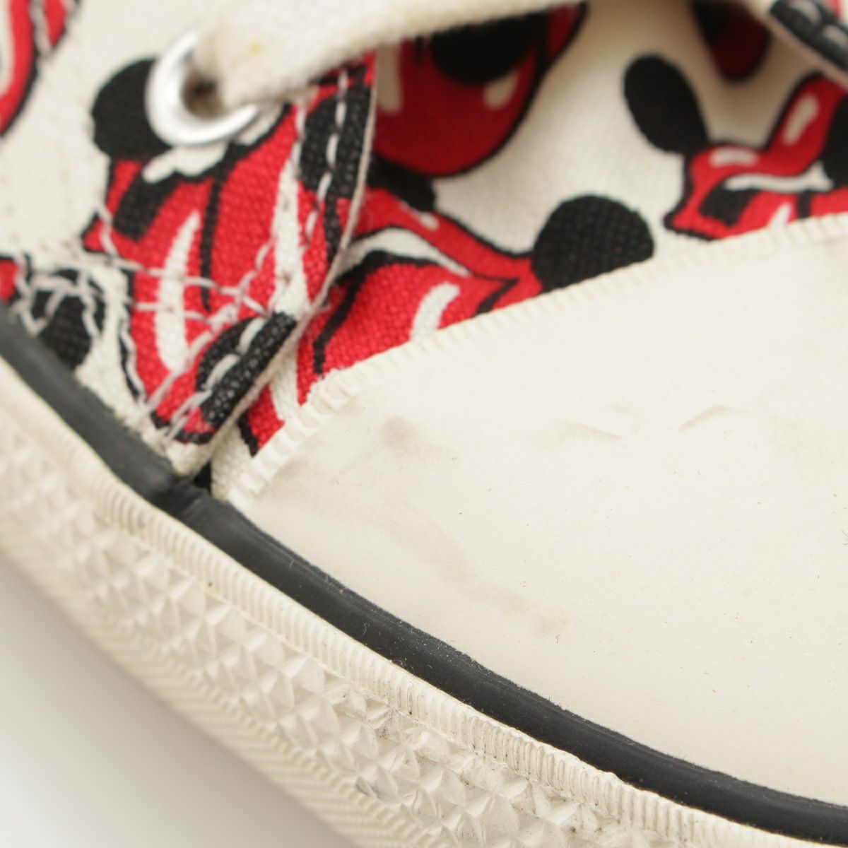 コムデギャルソンオムプリュス ローリングストーンズ キャンバス 総柄 スニーカー シューズ ホワイト レッド