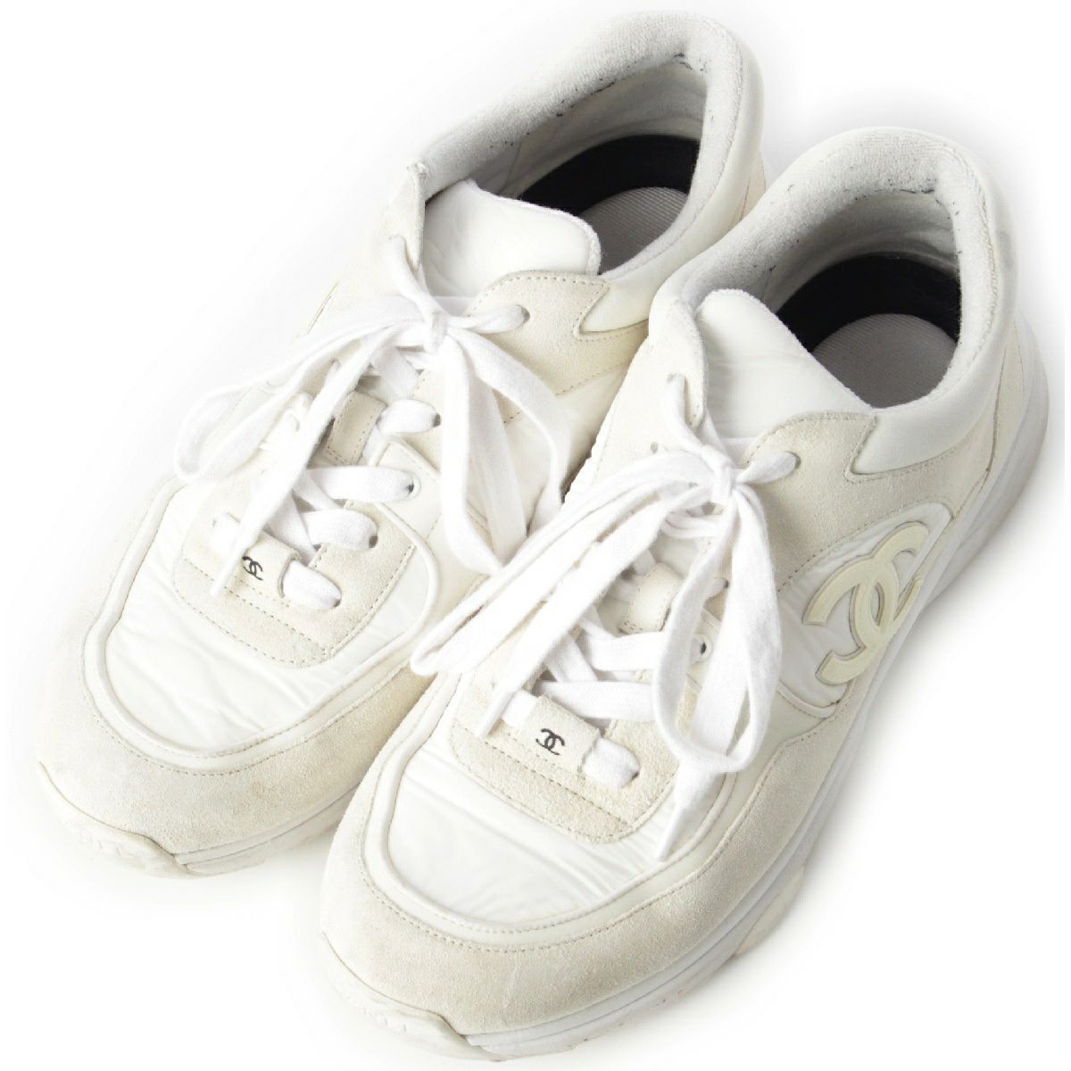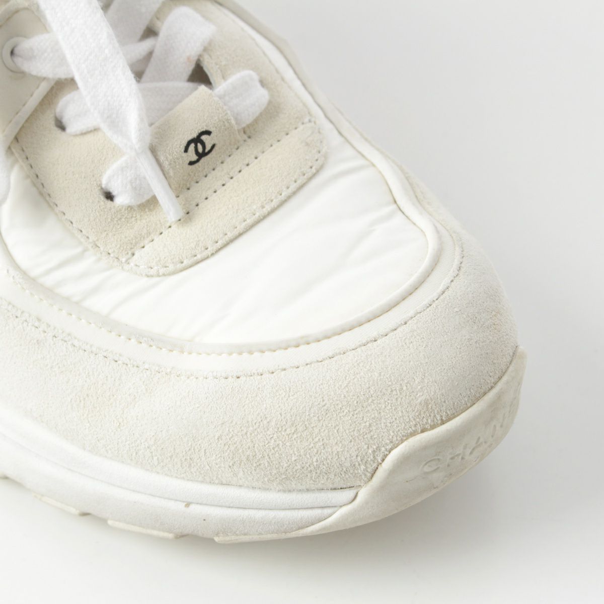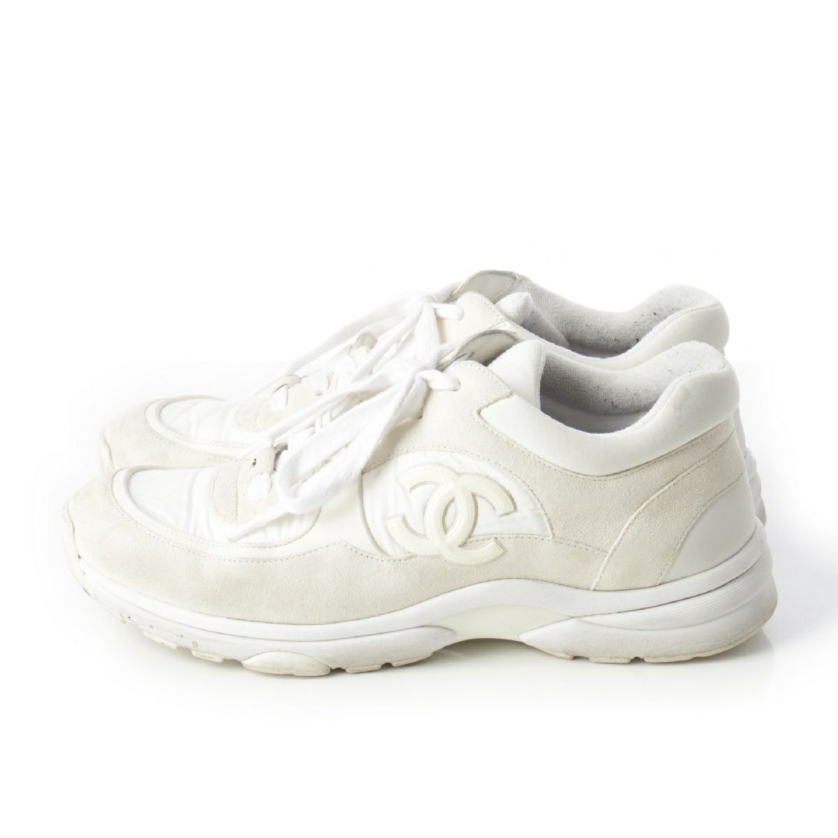 シャネル ナイロン スエード ココマーク レースアップ スニーカー シューズ ホワイト 42