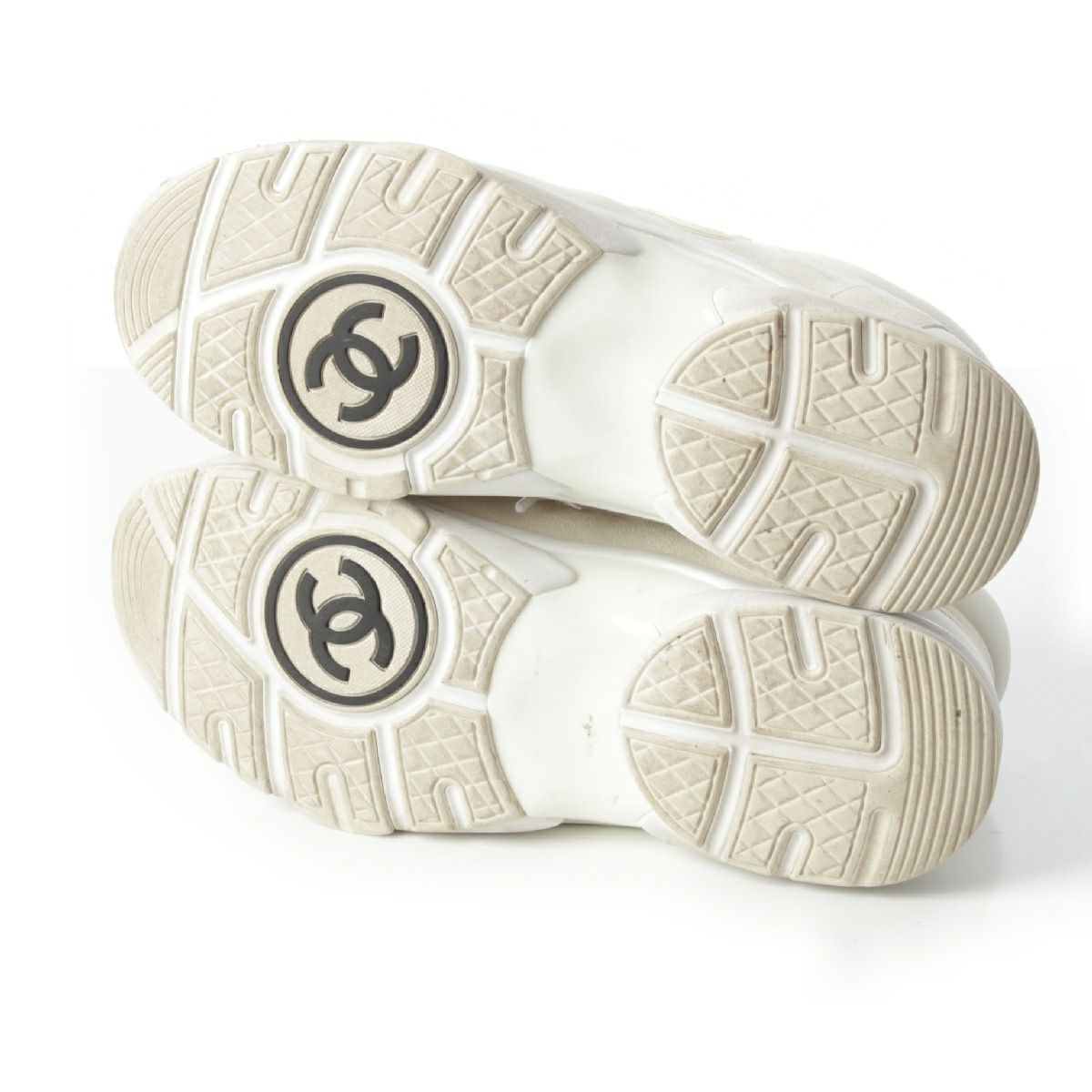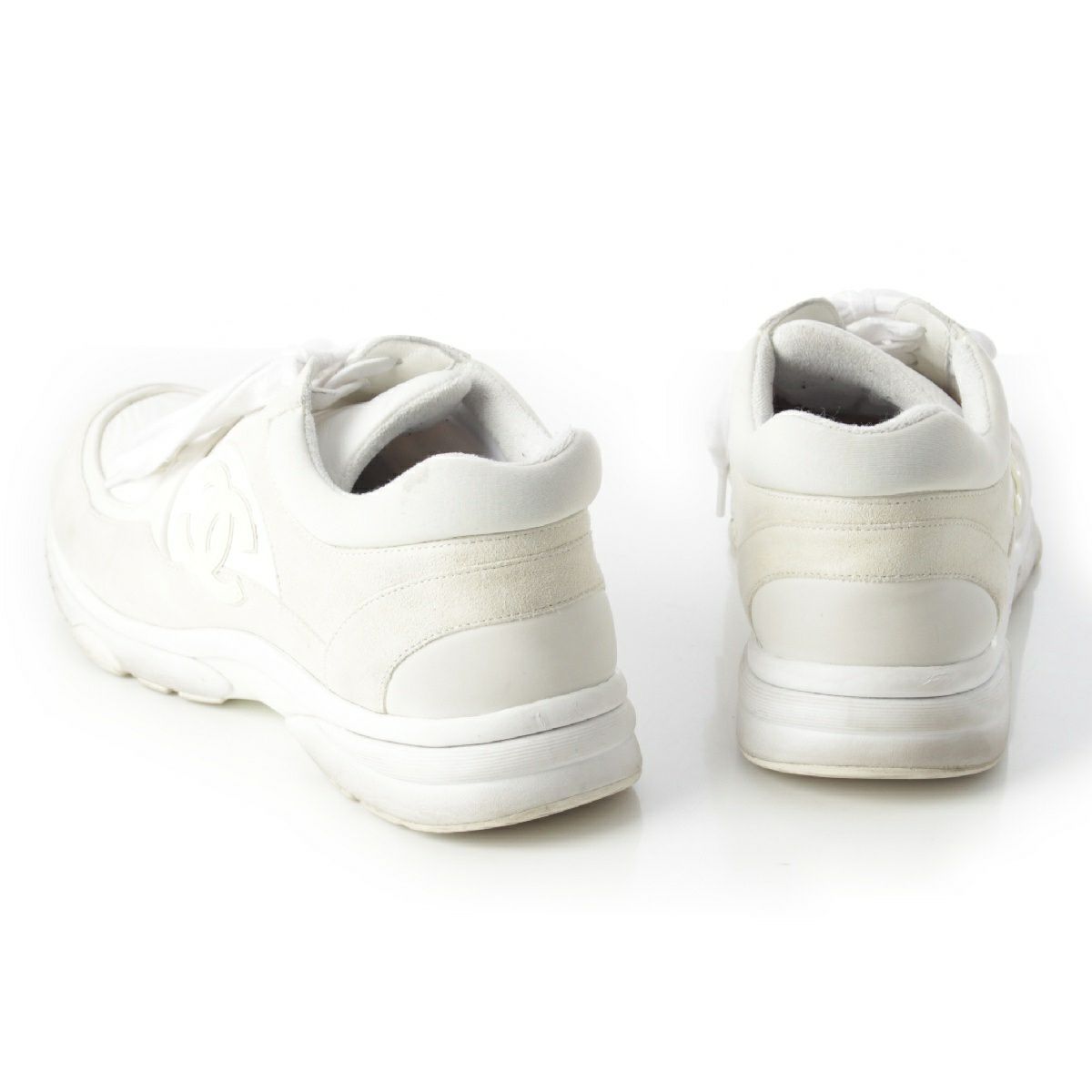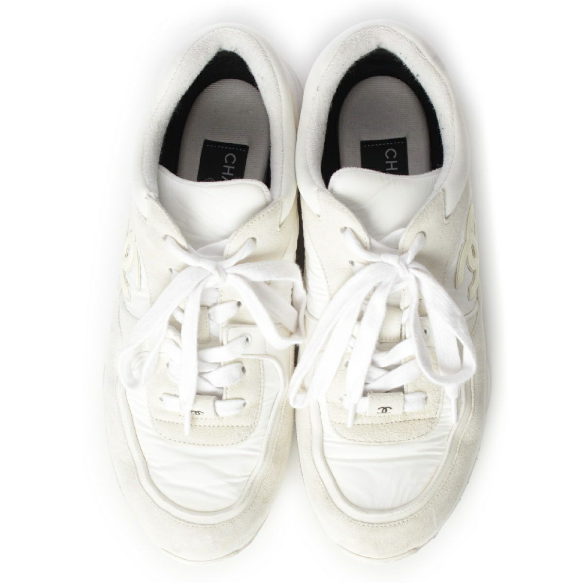 シャネル ナイロン スエード ココマーク レースアップ スニーカー シューズ ホワイト 42