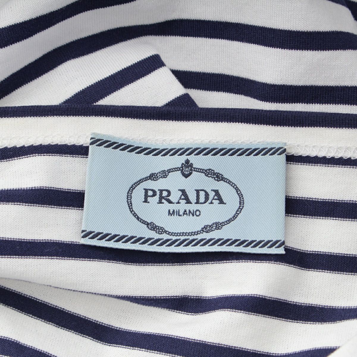 他の画像を見る PRADA プラダ コットン トライアングル ロゴ ボーダー クロップ トップス S221 ホワイト ネイビー お気に入りに登録する 当店特別価格 ¥ 40,700 税込 円 37,000円