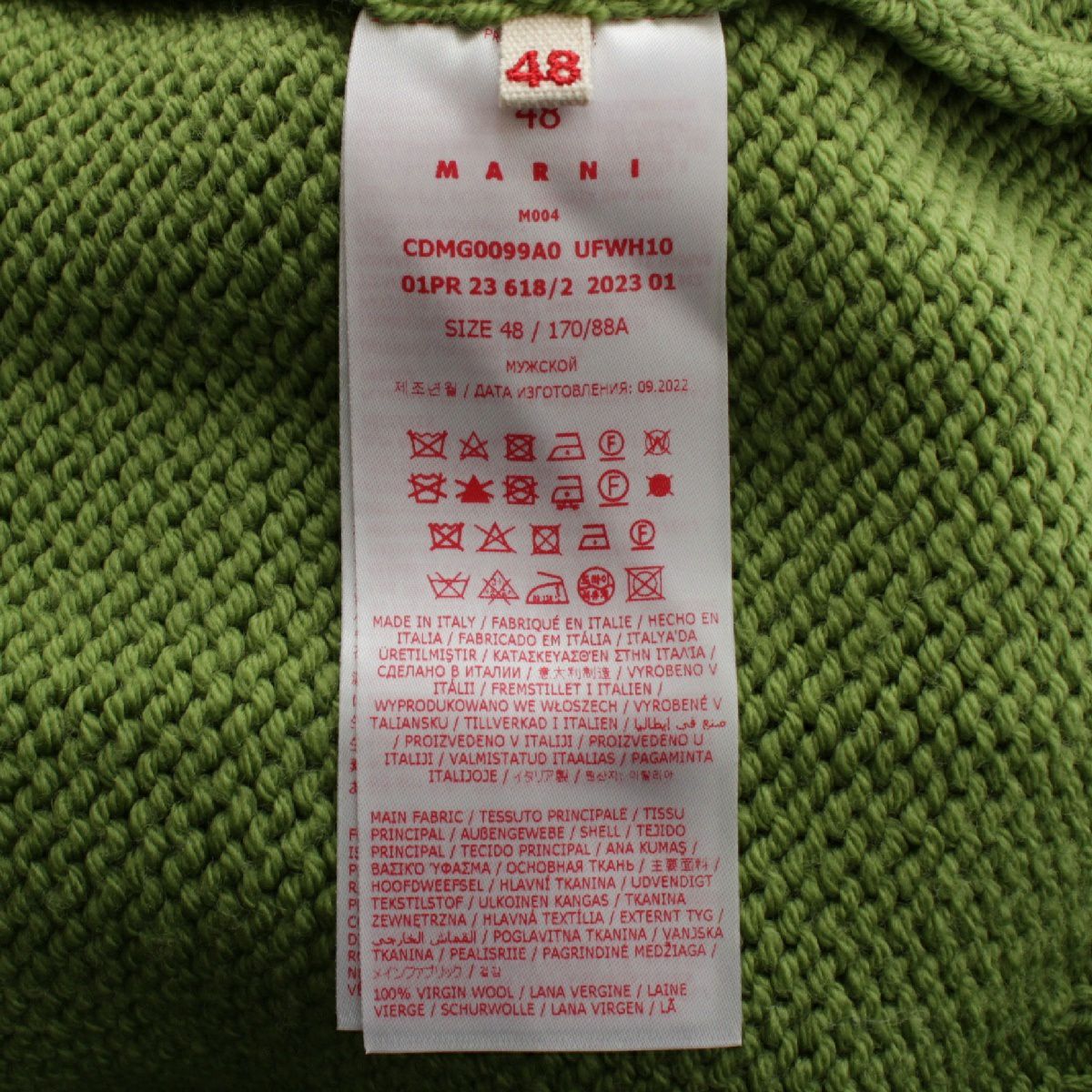 マルニ 23SS ウール バックエンブロイダリーロゴ Vネック ニット カーディガン セーター トップス CDMG0099A0 グリーン 48