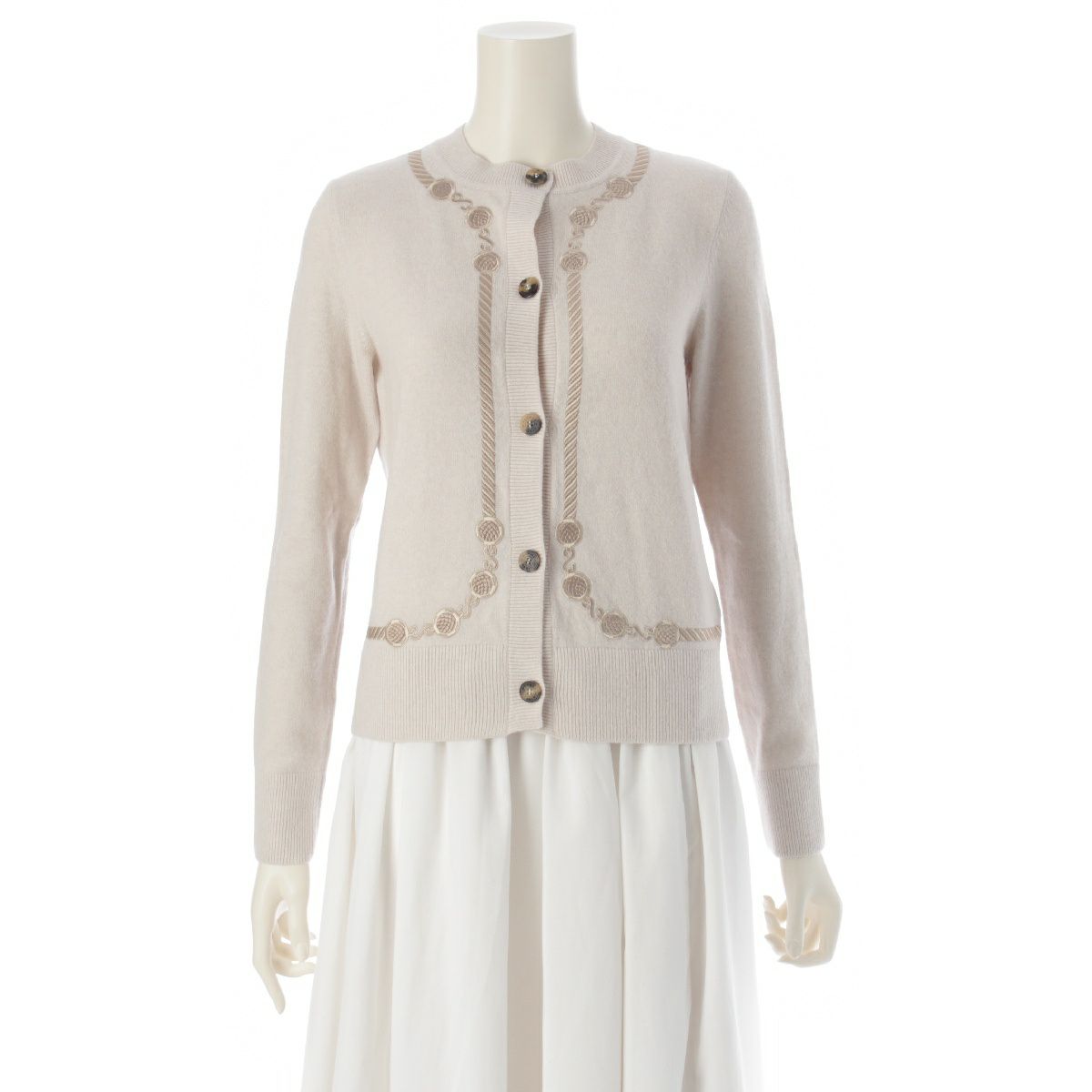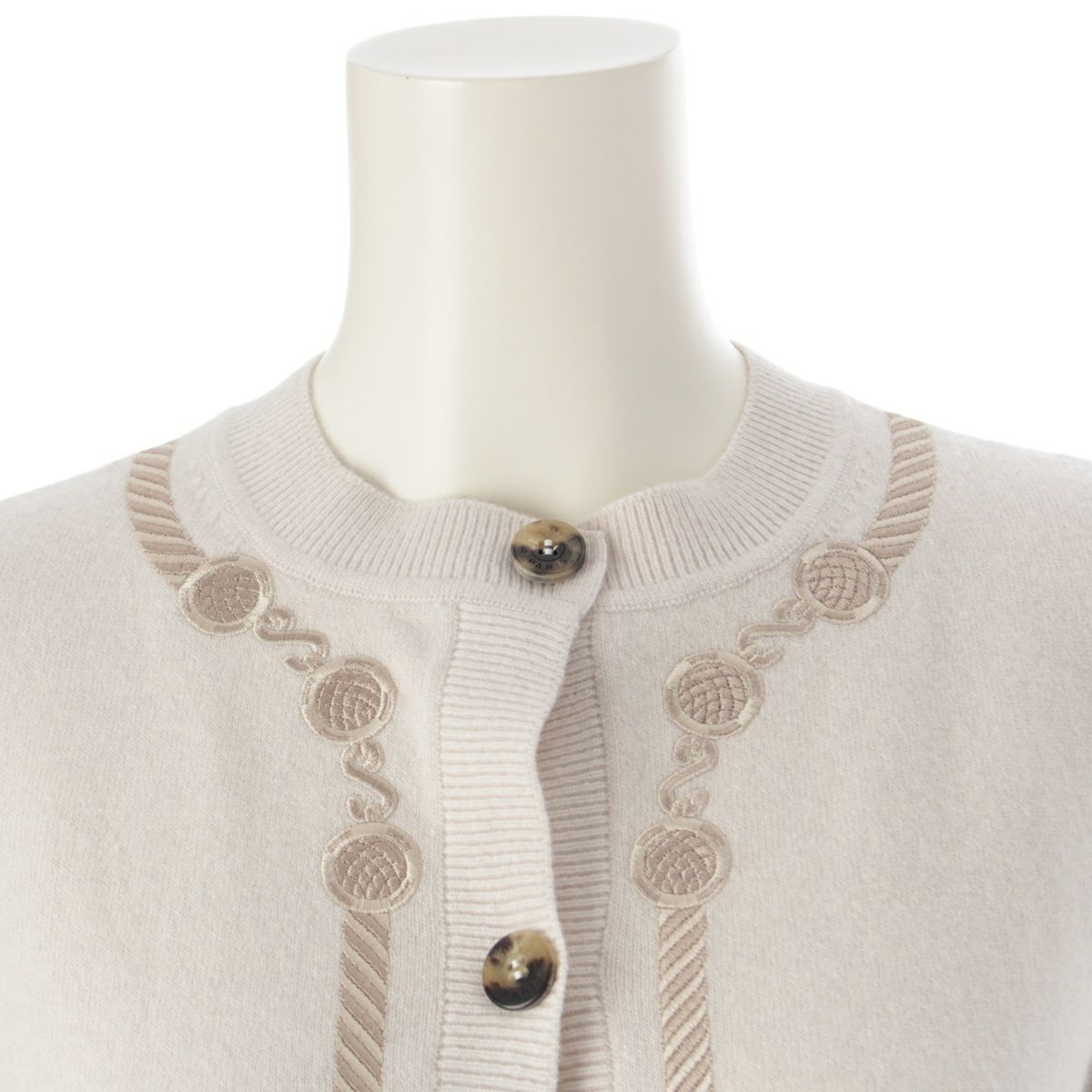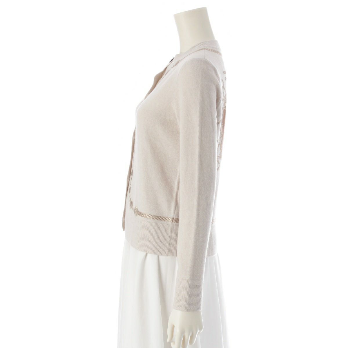 エルメス Les Tambours ヴァージンウール セリエボタン 刺繍 カーディガン トップス 3H2708DI ベージュ 34