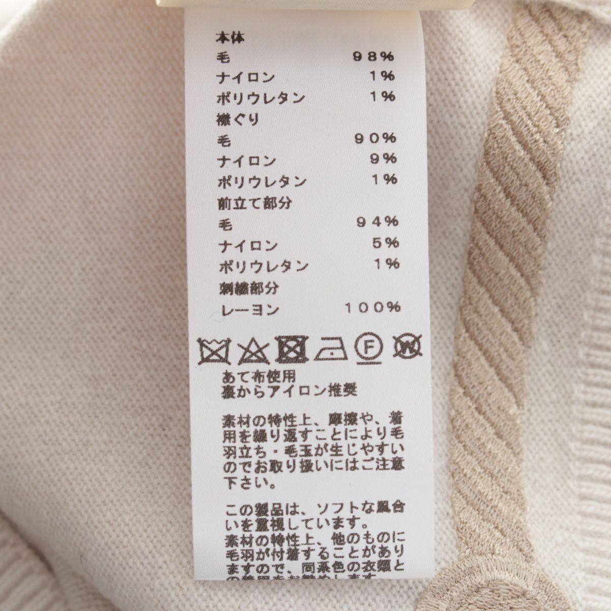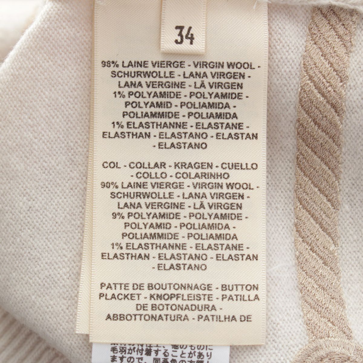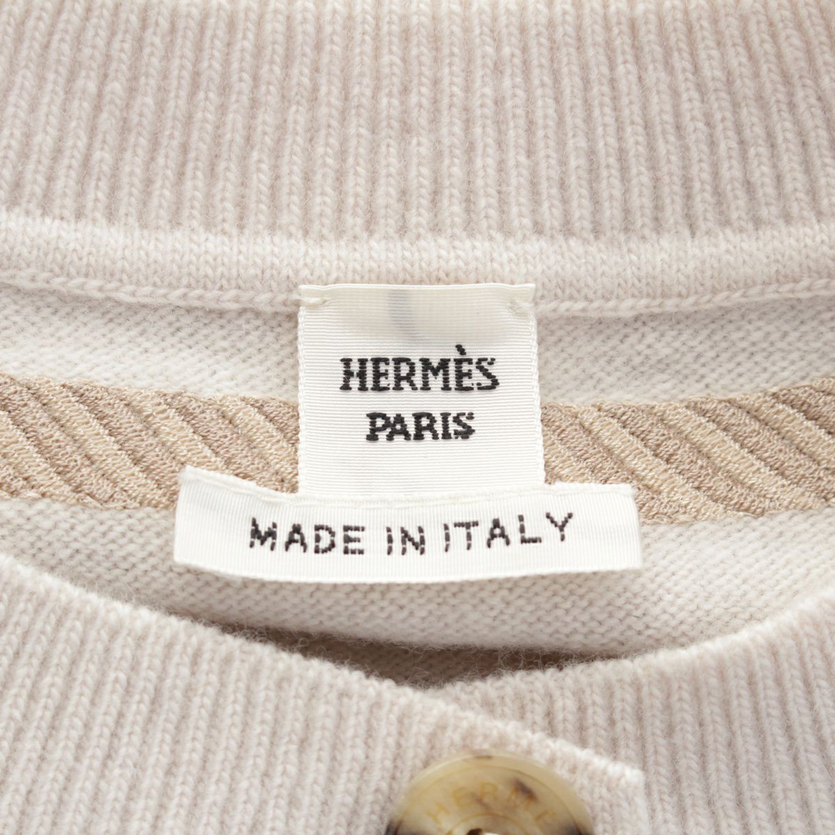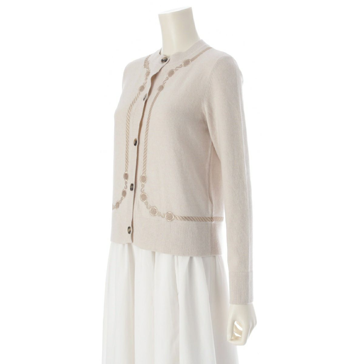 エルメス Les Tambours ヴァージンウール セリエボタン 刺繍 カーディガン トップス 3H2708DI ベージュ 34