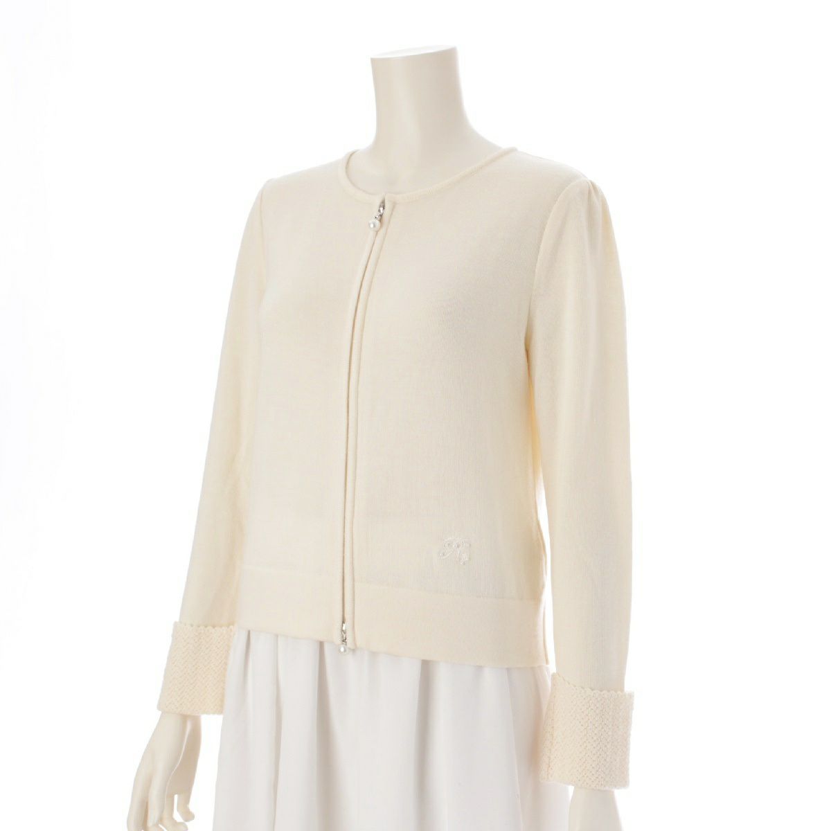 ルネ 22年 ウール パール レース ジップ カーディガン トップス 6132560 ホワイト 36