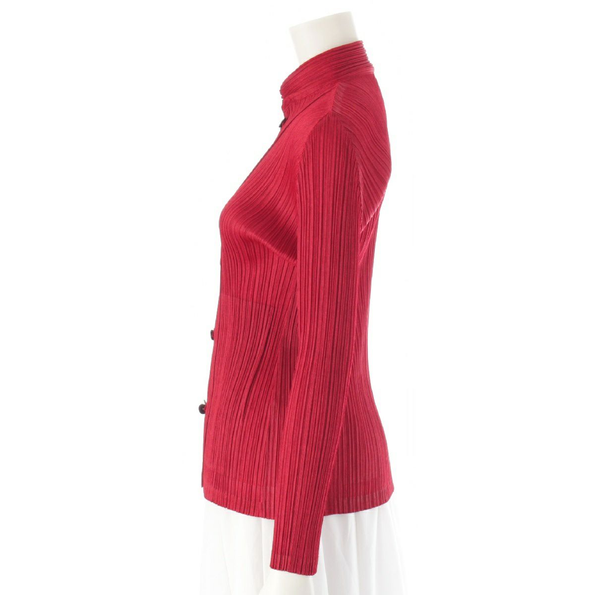 プリーツプリーズ イッセイミヤケ ドラゴン 龍 チャイナボタン カーディガン トップス シャツ ブラウス PP63-JD143 レッド 3