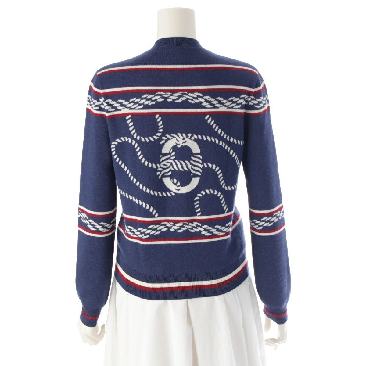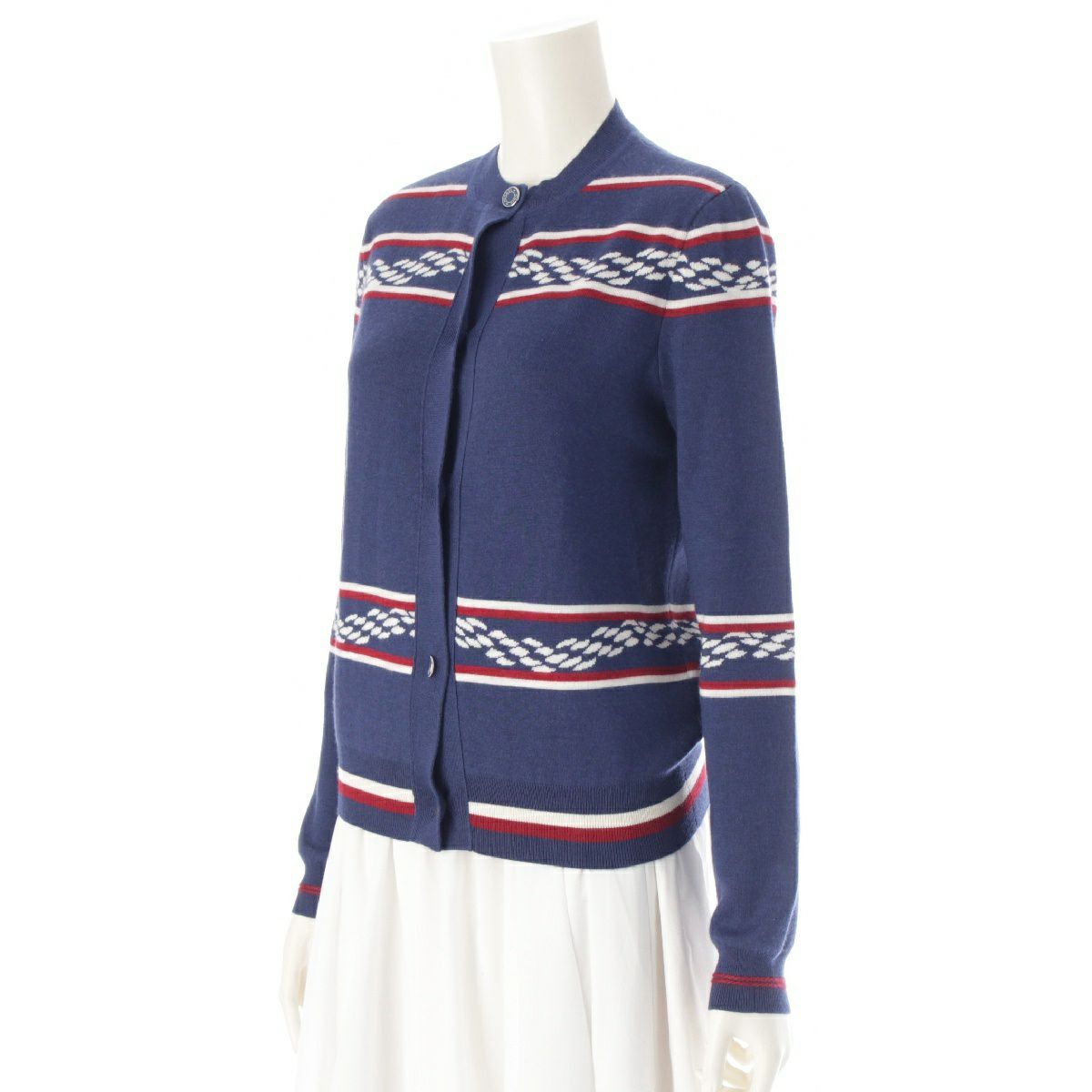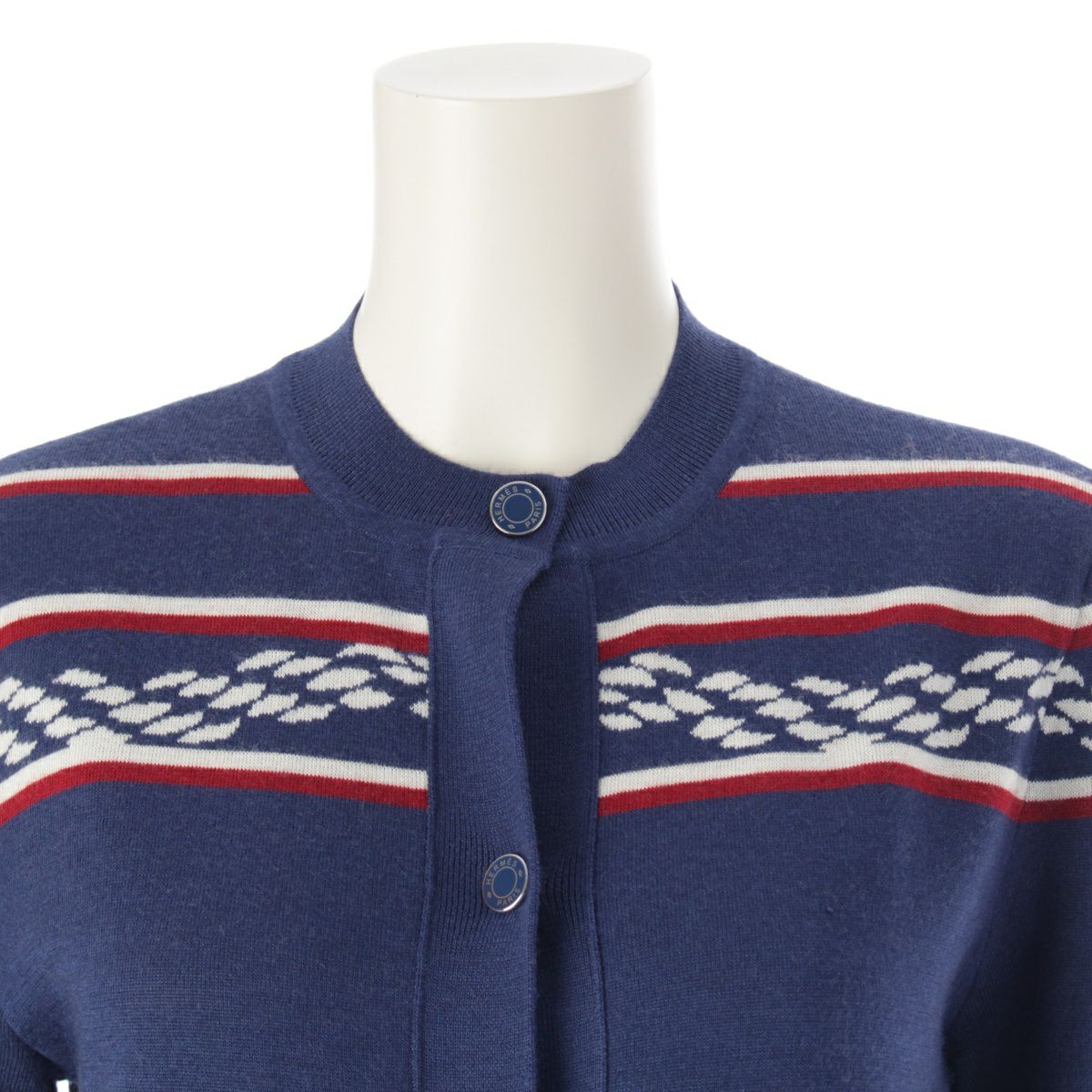 エルメス 23SS カシミヤ シルク カヌーチェーン セリエボタン アンカー ニット カーディガン トップス 3E2715D4 ブルー 34