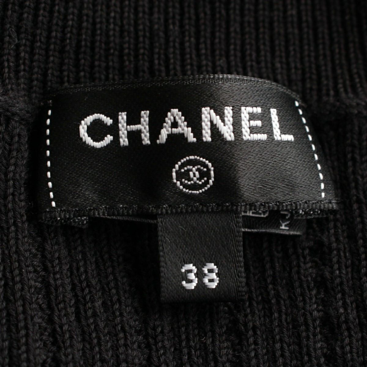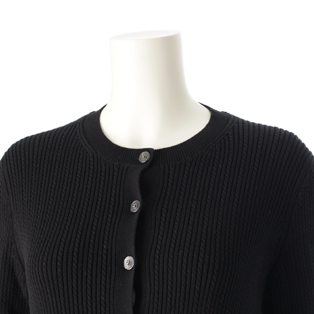 シャネル 22P ライオンボタン ココマーク リブニット ロング カーディガン ワンピース トップス P72202 ブラック 38
