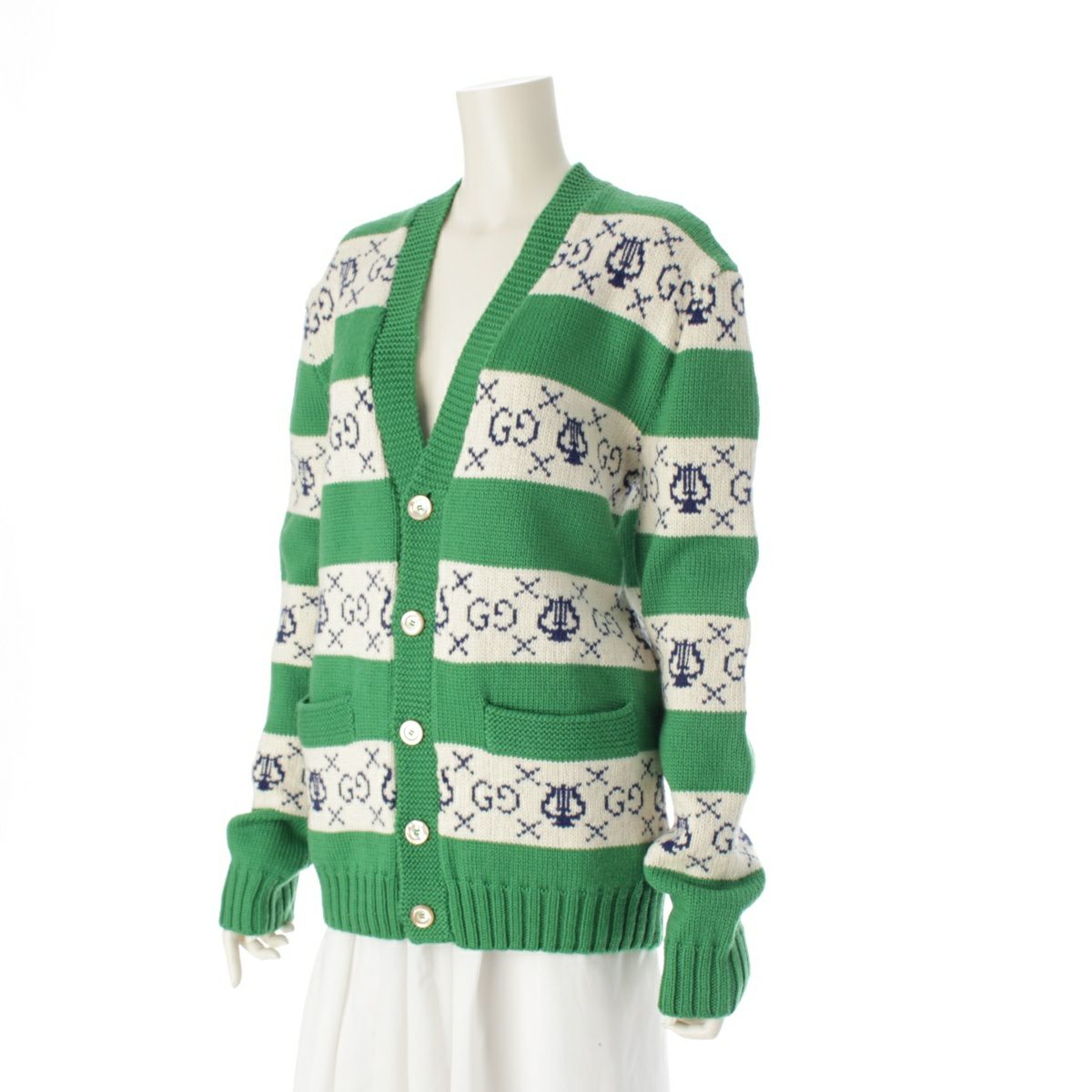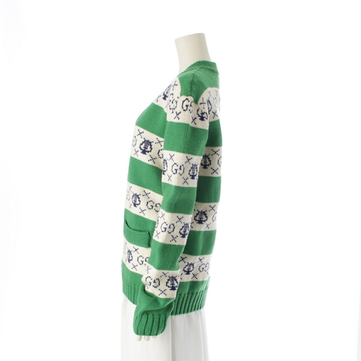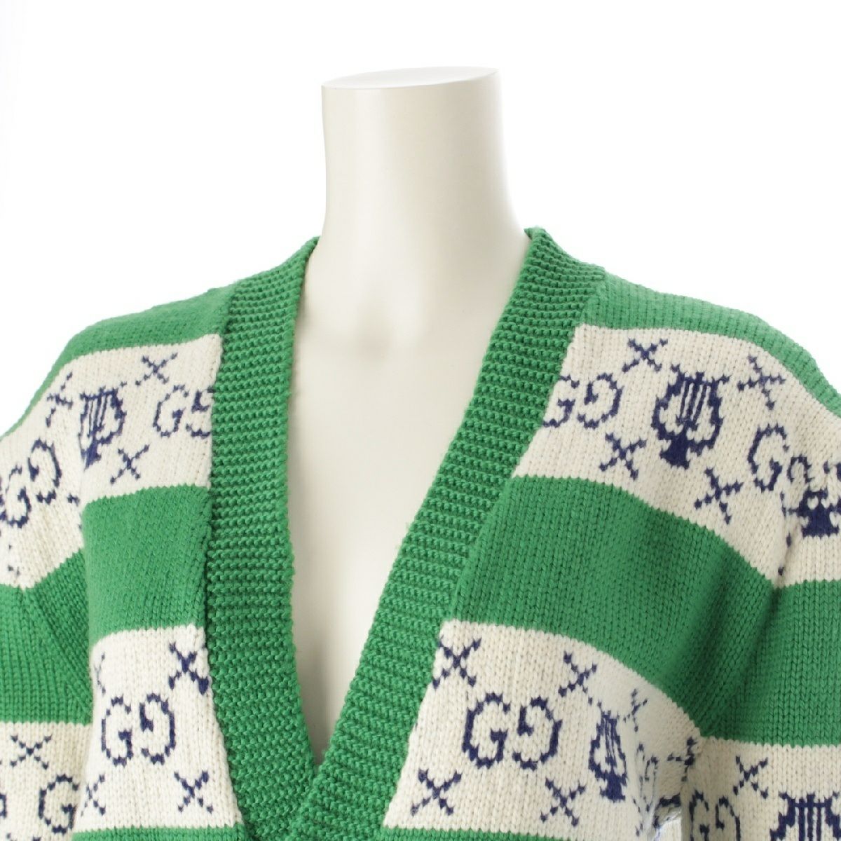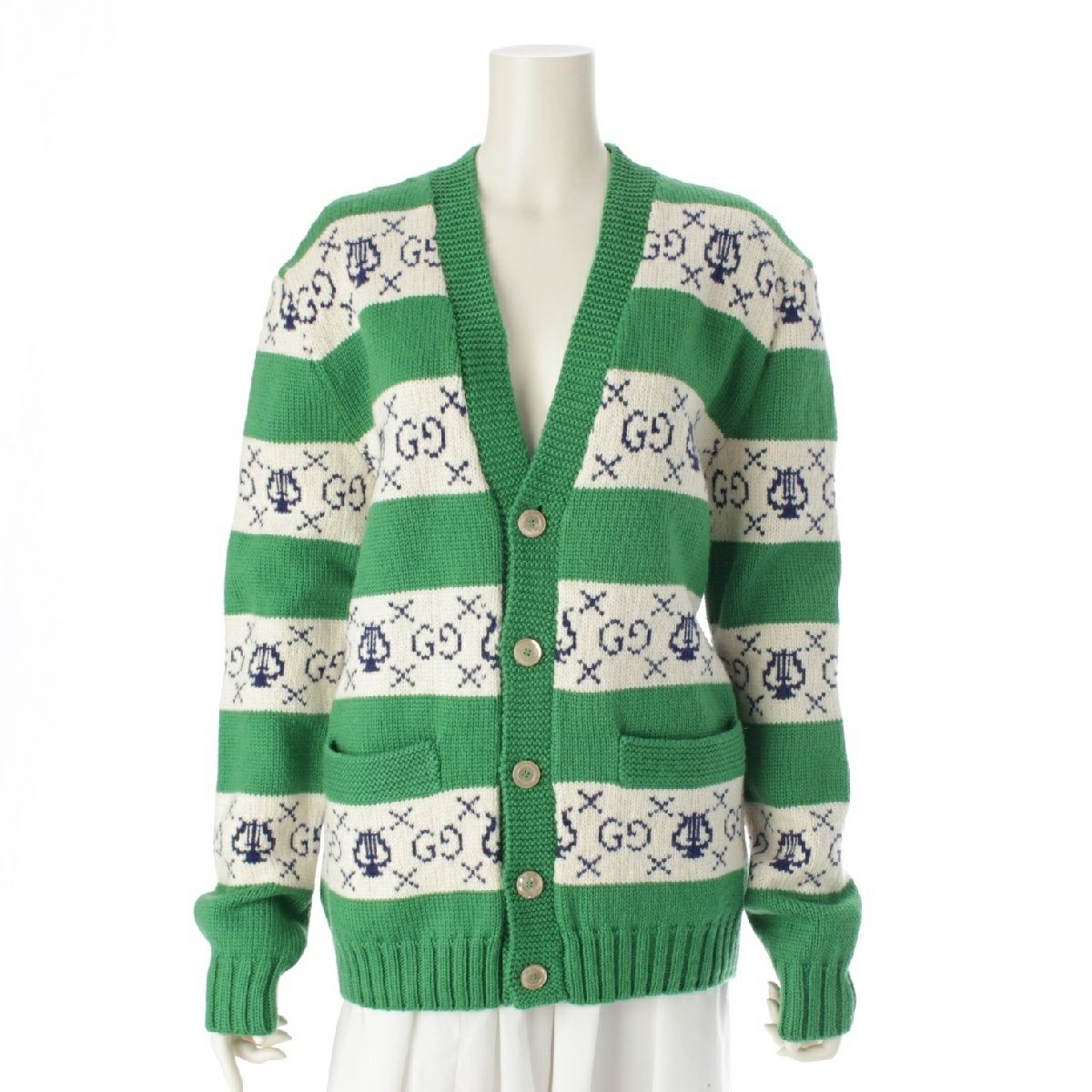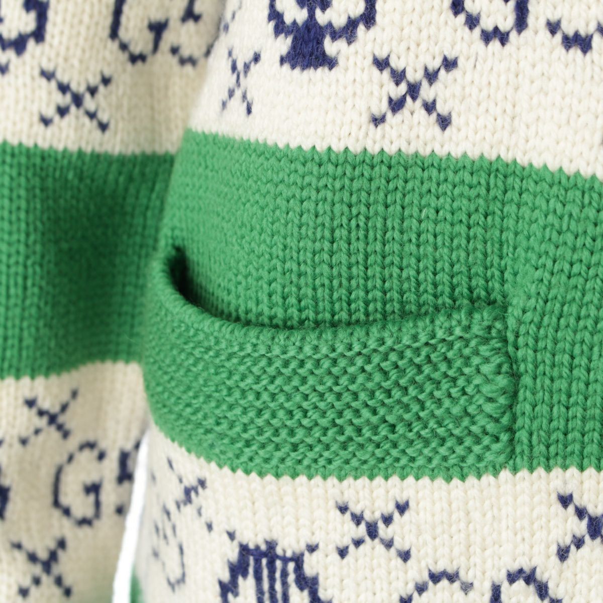グッチ 19AW ウール GGリラストライプ ジャガード ニット カーディガン トップス 577119 グリーン XS