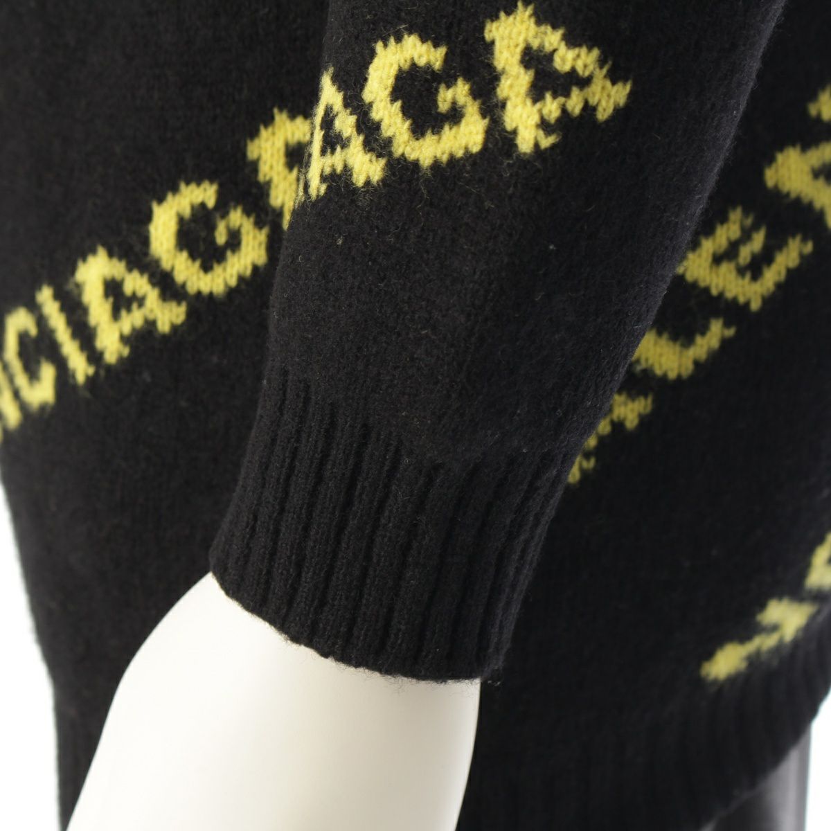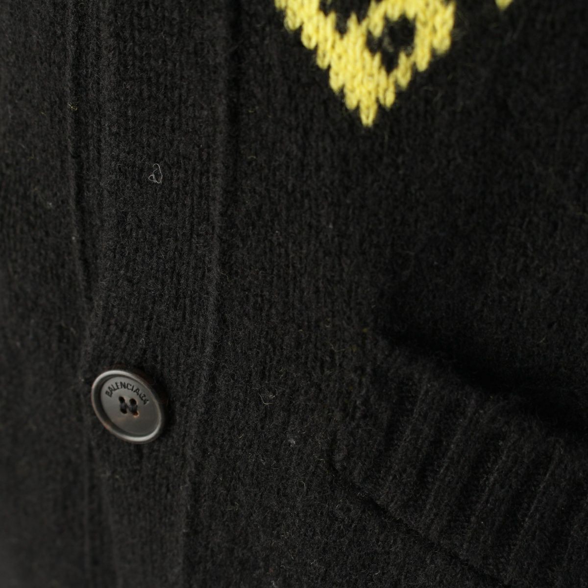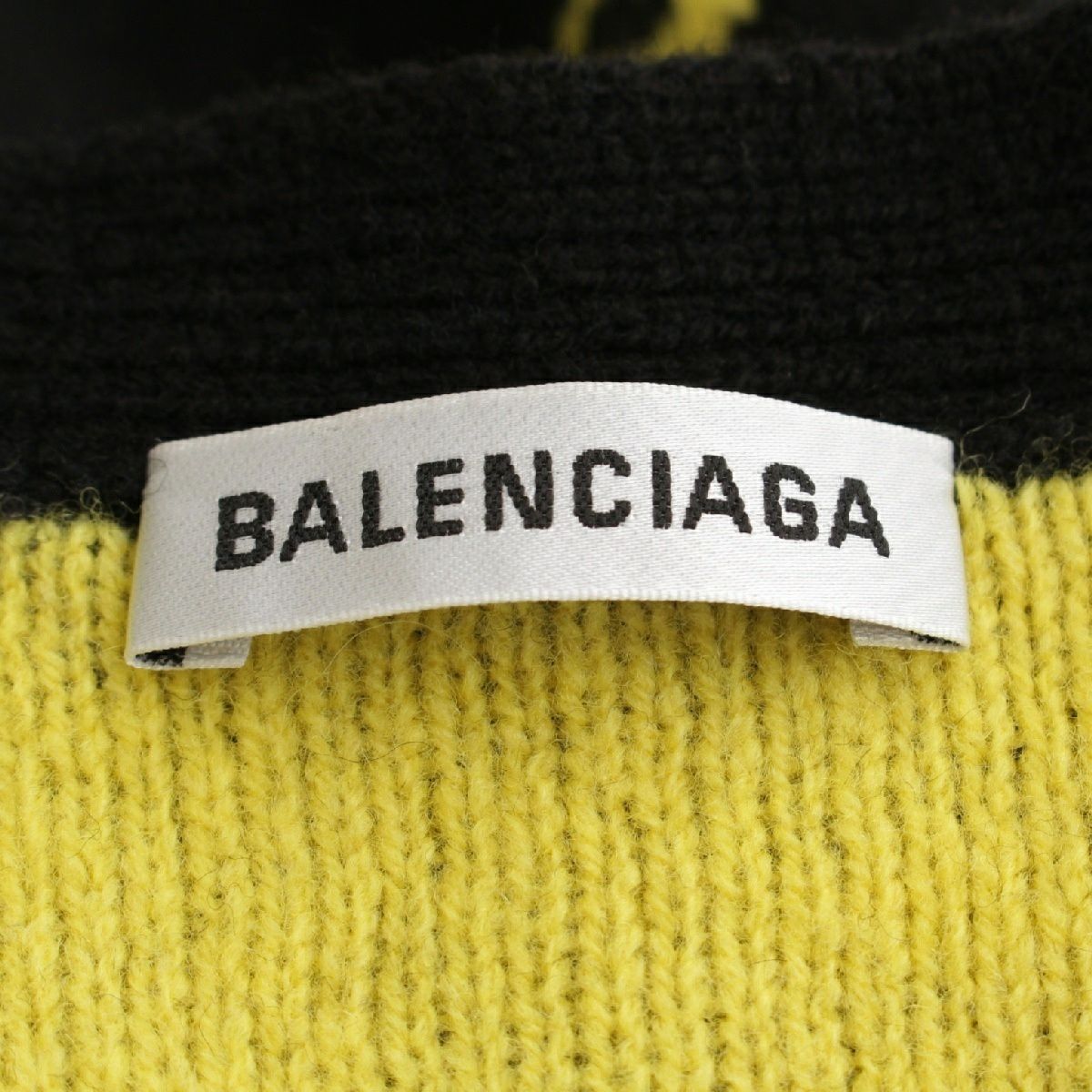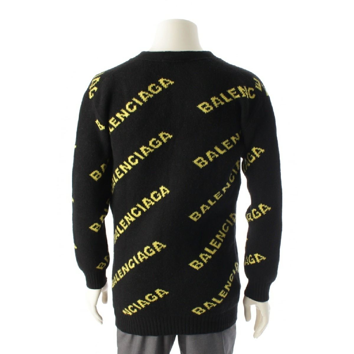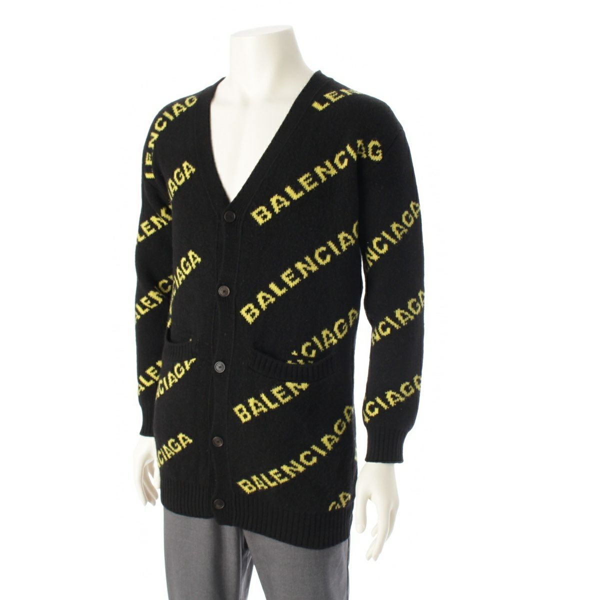 バレンシアガ ウール ロゴ 長袖 ニット カーディガン セーター トップス ブラック イエロー XS