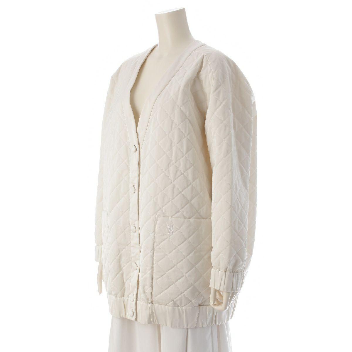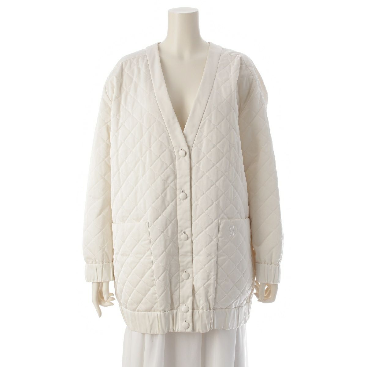 マディソンブルー 22SS ロゴ刺繍 キルティング ツイルニット カーディガン ジャケット アウター MB221-1015 ホワイト 02 M