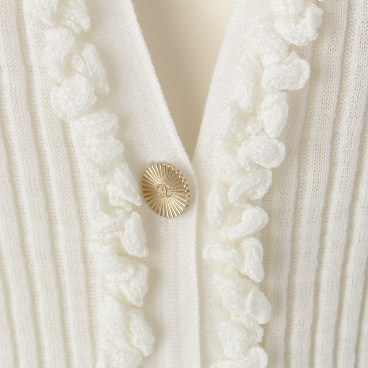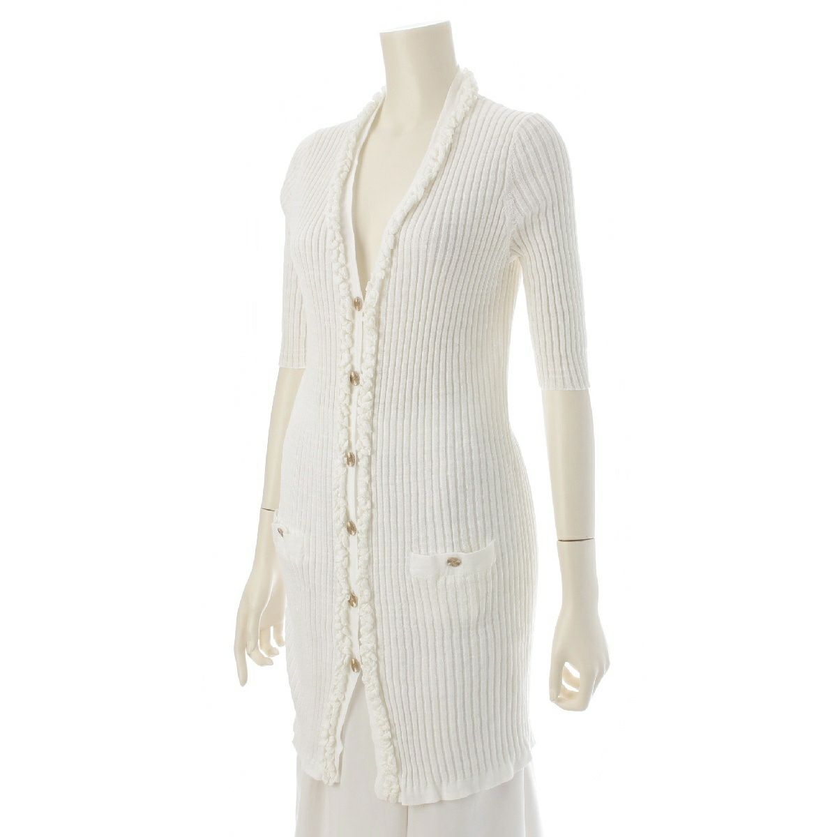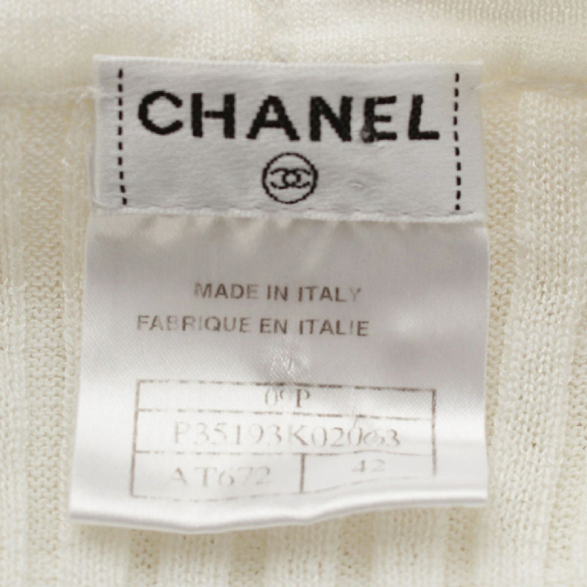シャネル 09P コットン ココマーク ボタン リブニット ロング カーディガン P35193 ホワイト 42