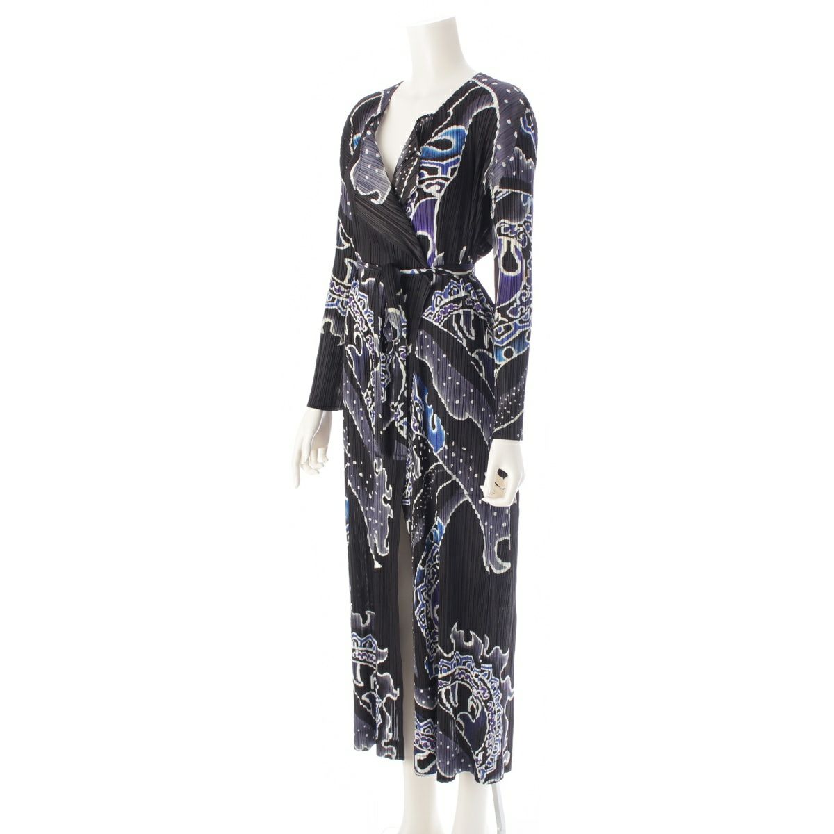 プリーツプリーズ イッセイミヤケ ねぶた フレイム 祭 和柄 ロング ウエストベルト カーディガン コート PP91-JA652 ブラック ブルー 3
