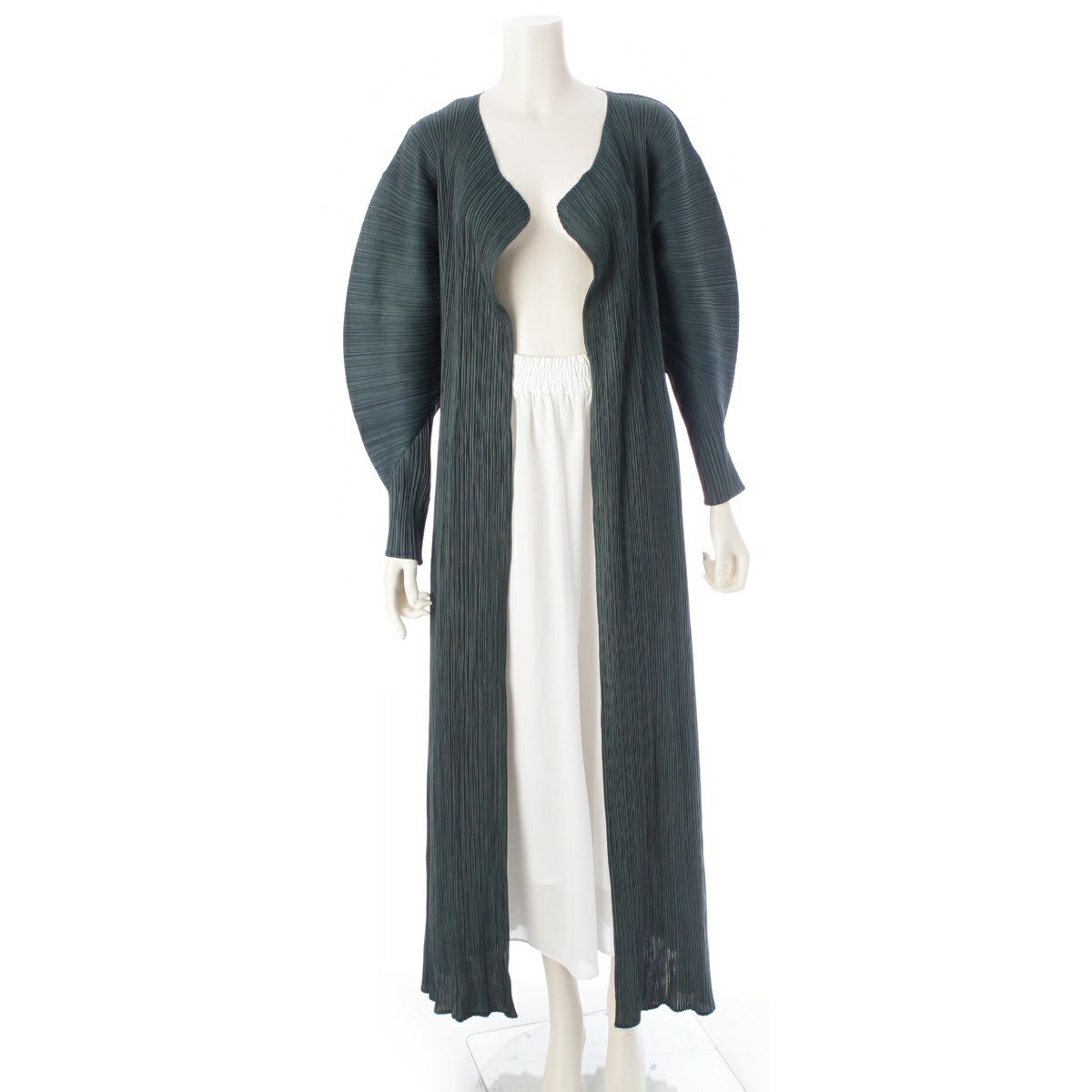 プリーツプリーズ イッセイミヤケ 長袖 ロング カーディガン トップス PP94-JH617 グリーン系 4