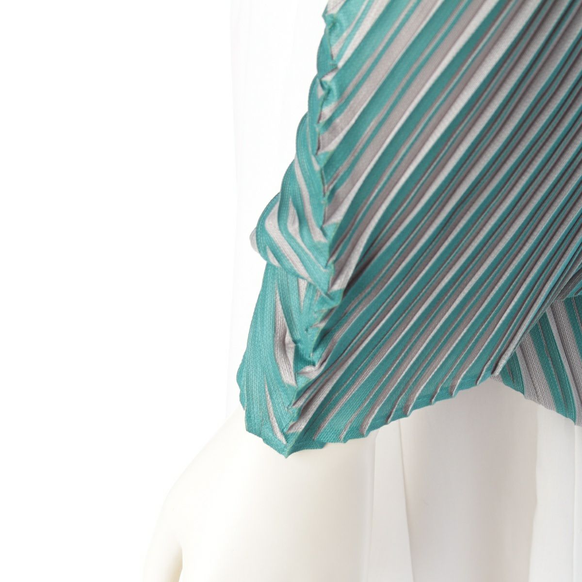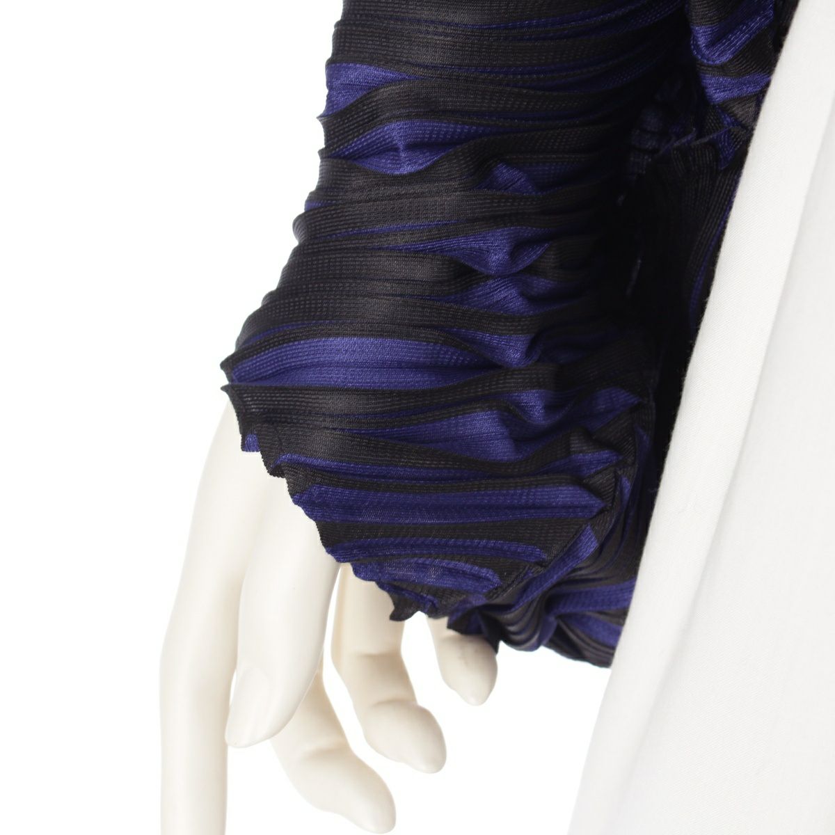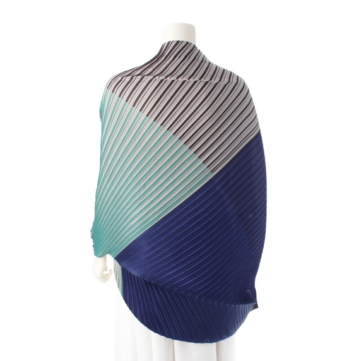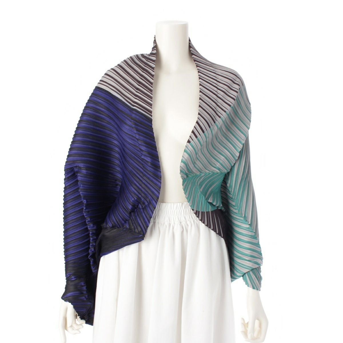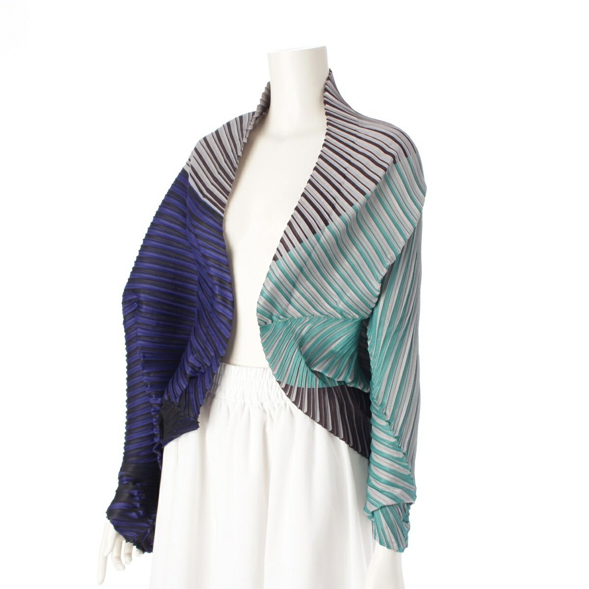 イッセイミヤケ 斜めプリーツ ストライププリント ボレロ カーディガン トップス PP53-J0555 ブラック ブル―系 マルチカラー F