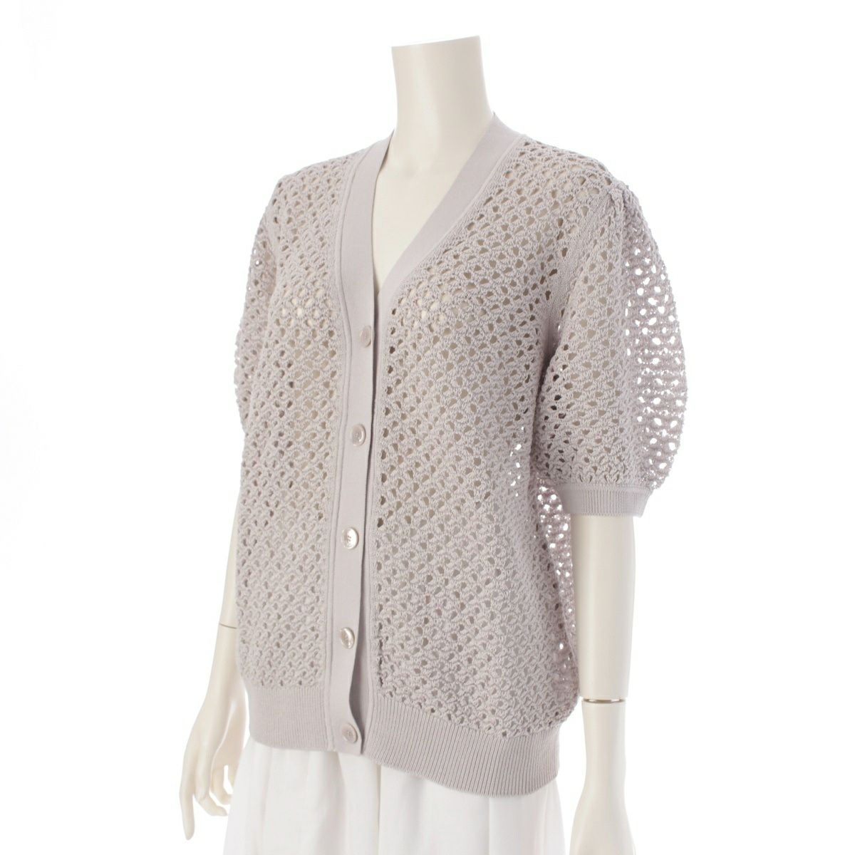 ドゥロワー 24年 コットン M.SUMMER1 7Gアイレット ショートスリーブ カーディガン トップス 6515-199-0624 ライトグレー