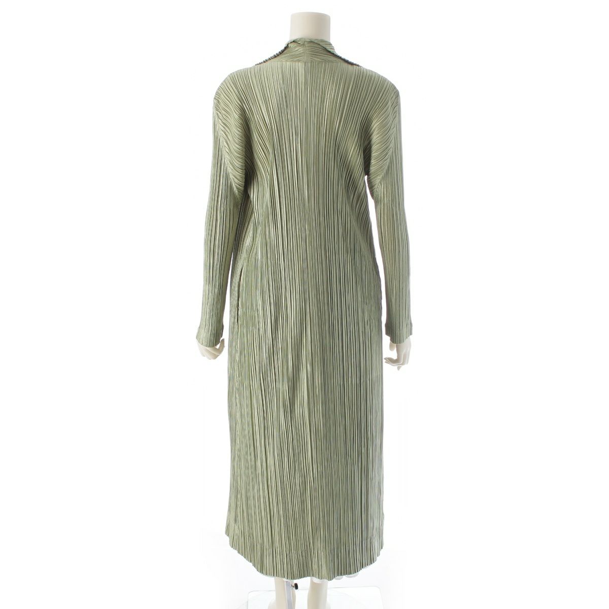 プリーツプリーズ 襟付き 長袖 ロング カーディガン 前開き ライトグリーン 4