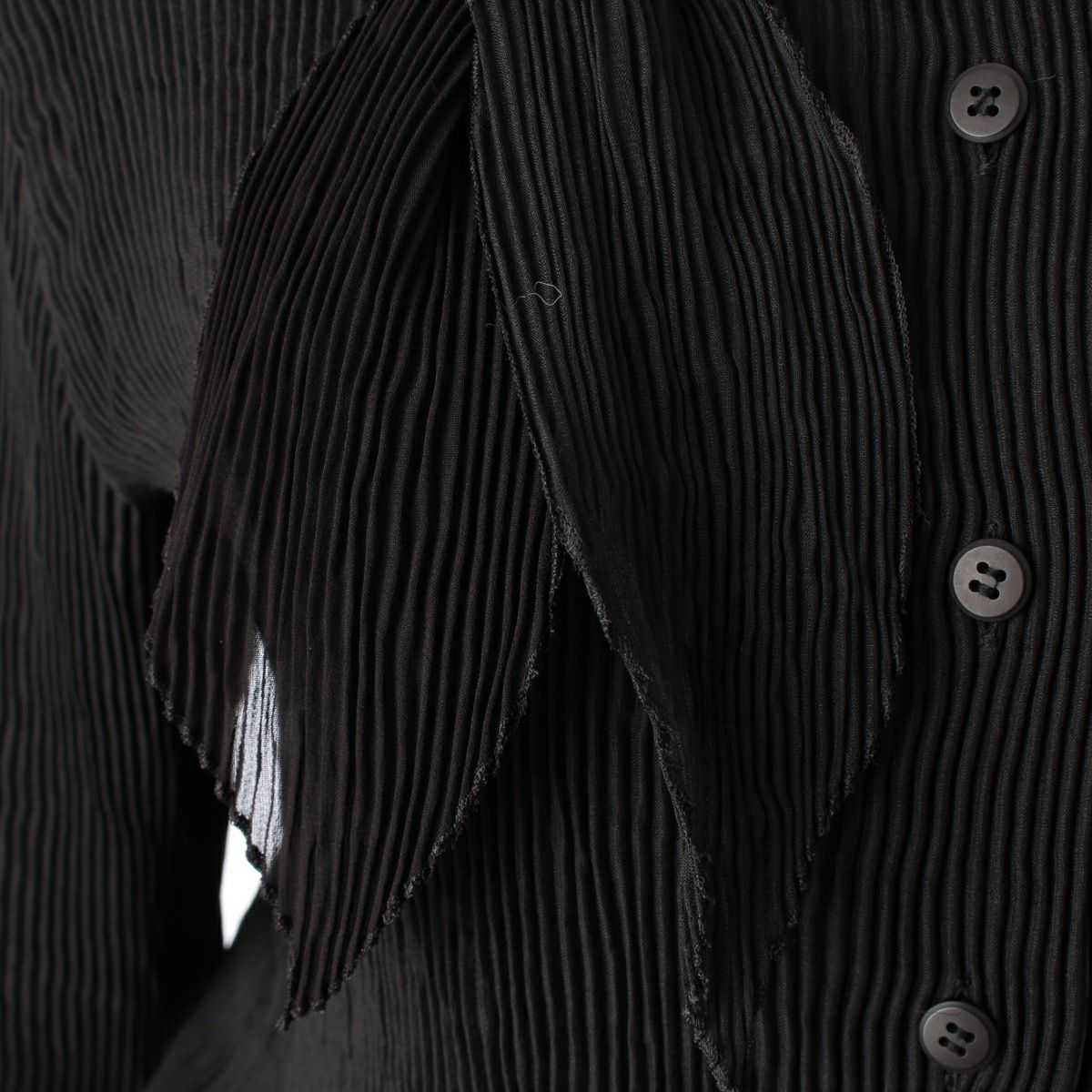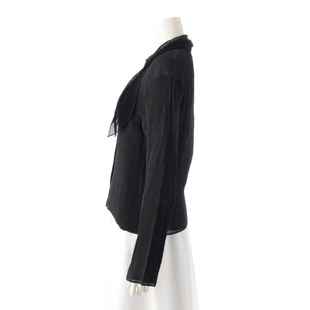 イッセイミヤケ リボンカラー 変形襟 レイヤード 長袖 カーディガン トップス ブラック 3