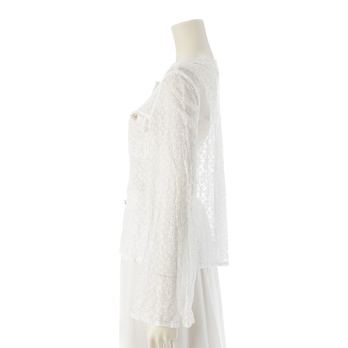 シャネル レース カメリアボタン カーディガン 長袖 P51458V38481 ホワイト