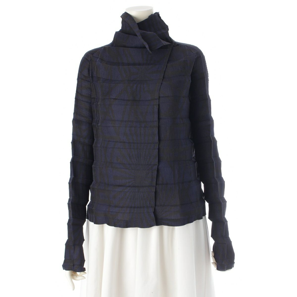 イッセイミヤケ フェット プリント 総柄 プリーツ アコーディオン カーディガン トップス IF64FJ784 ネイビー ブラック 2