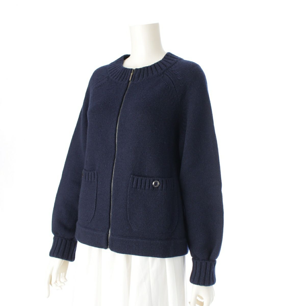 シャネル カシミヤ ジップアップ カーディガン トップス P47253 ネイビー 36