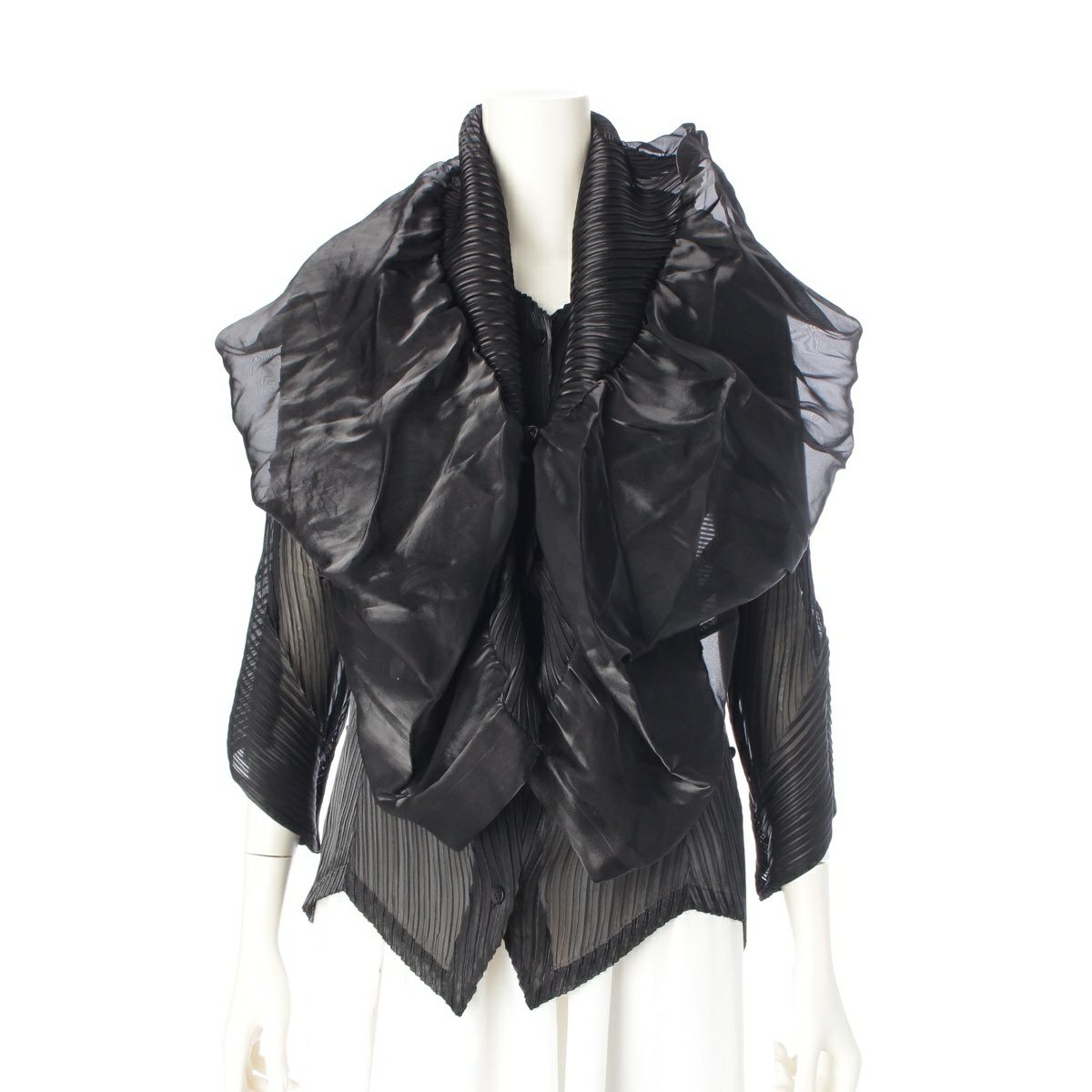 イッセイミヤケ 2010AW メタリック プリーツ 変型 2WAY カーディガン ジャケット トップス IM03FJ738 ブラック 2