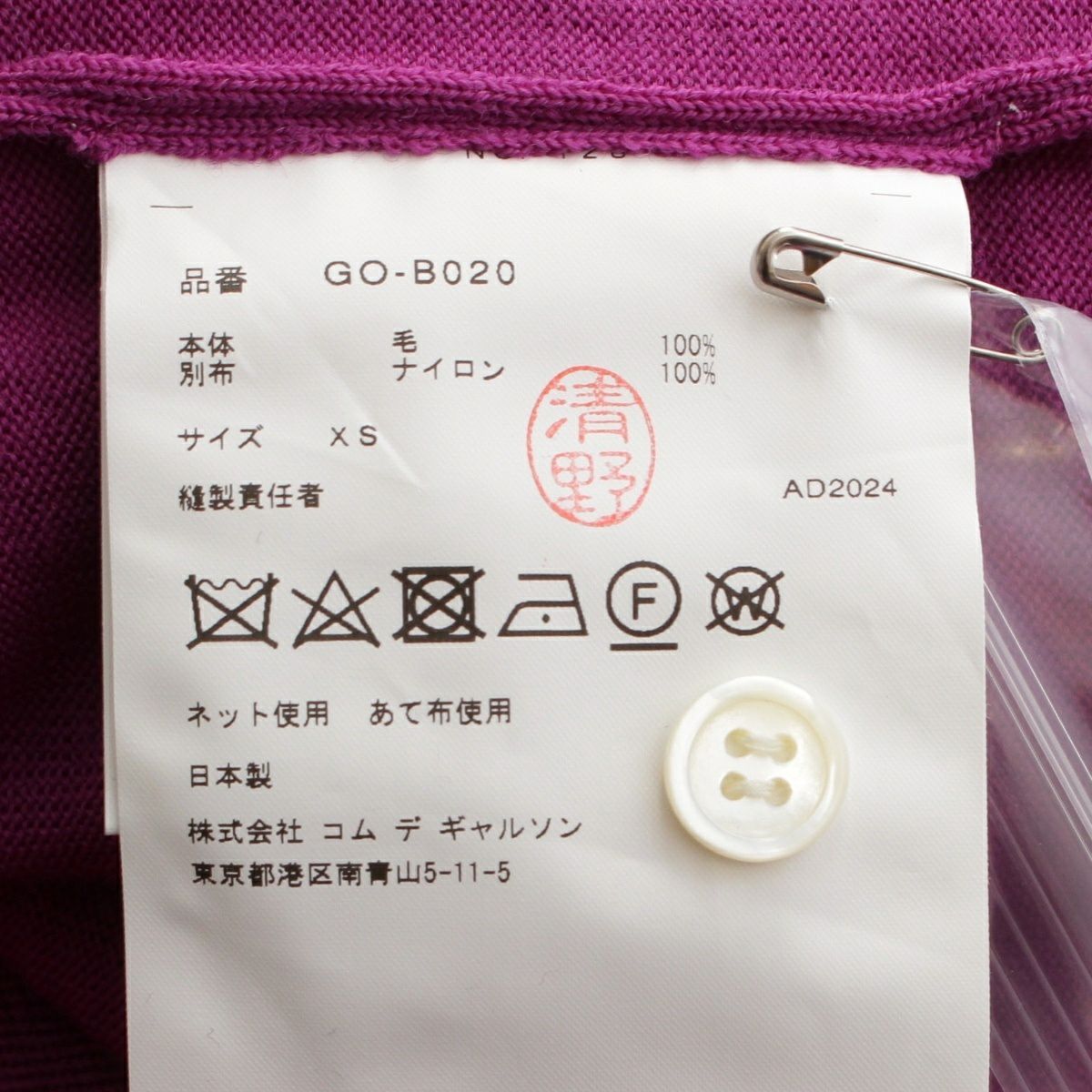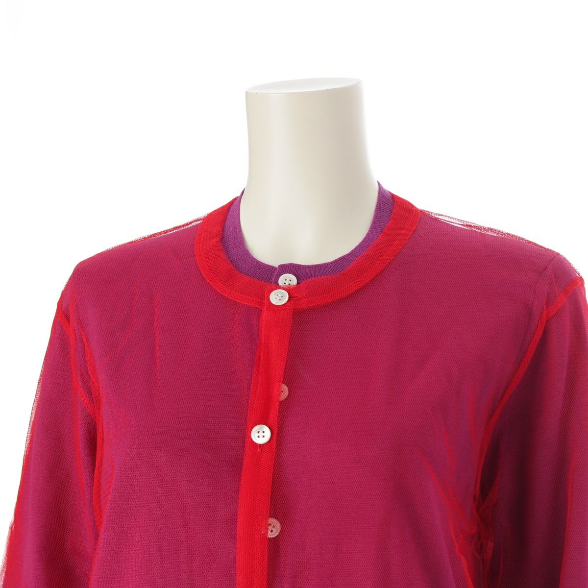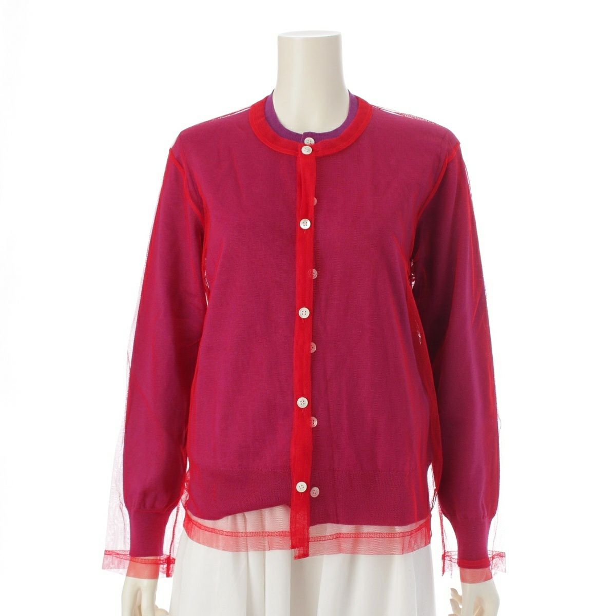 コムデギャルソン AD2024 25SS メッシュレイヤード ニット カーディガン トップス GO-B020 レッド パープル XS