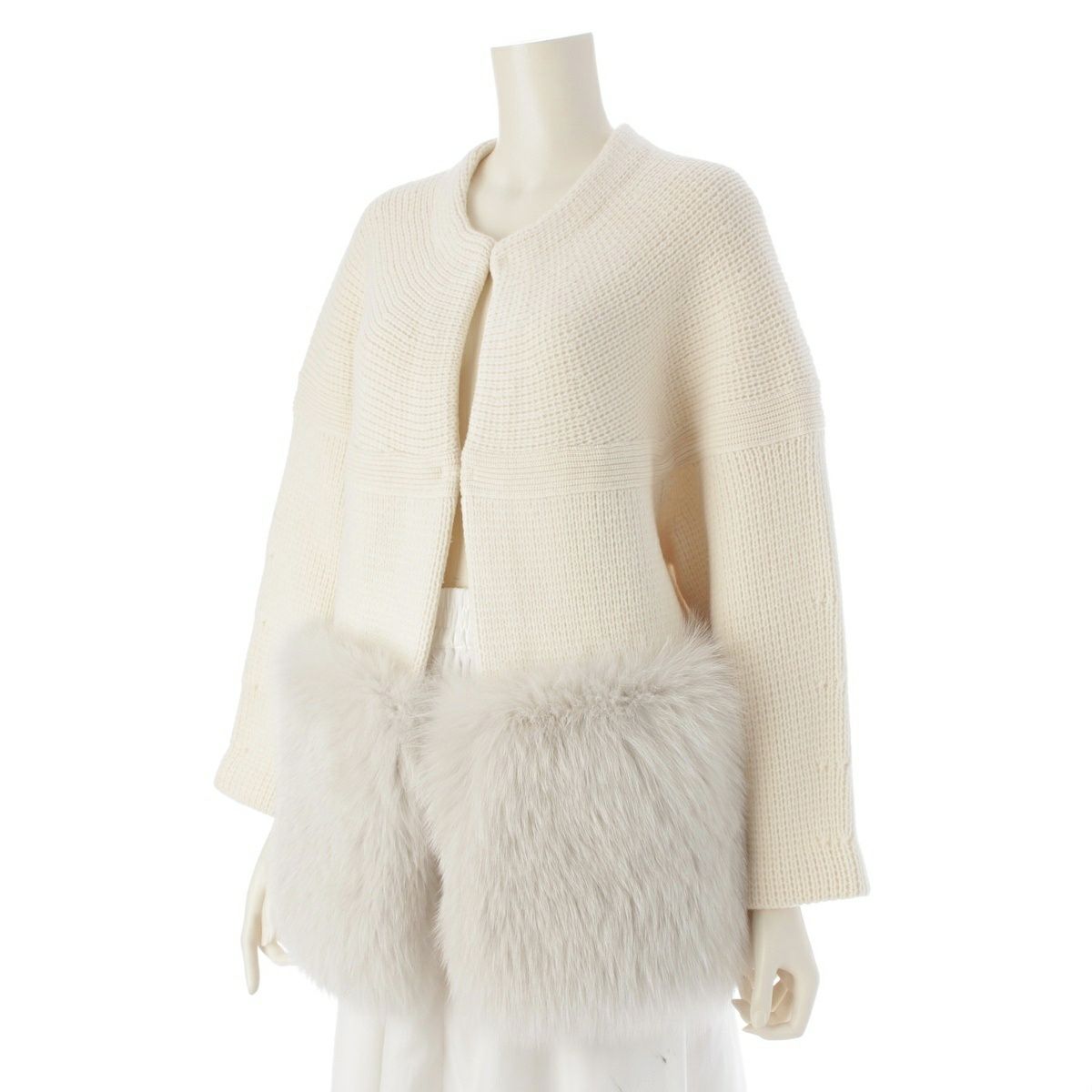 ドゥロワー ウール カシミヤ フォックスファー ニット カーディガン トップス 6515-199-0494 ホワイト グレー