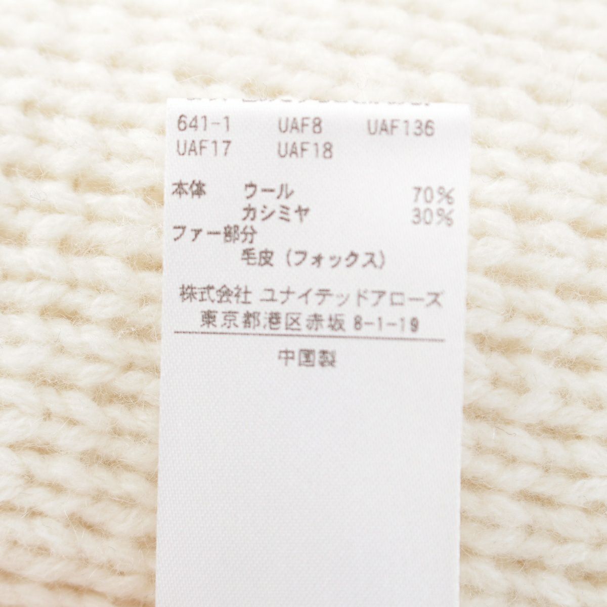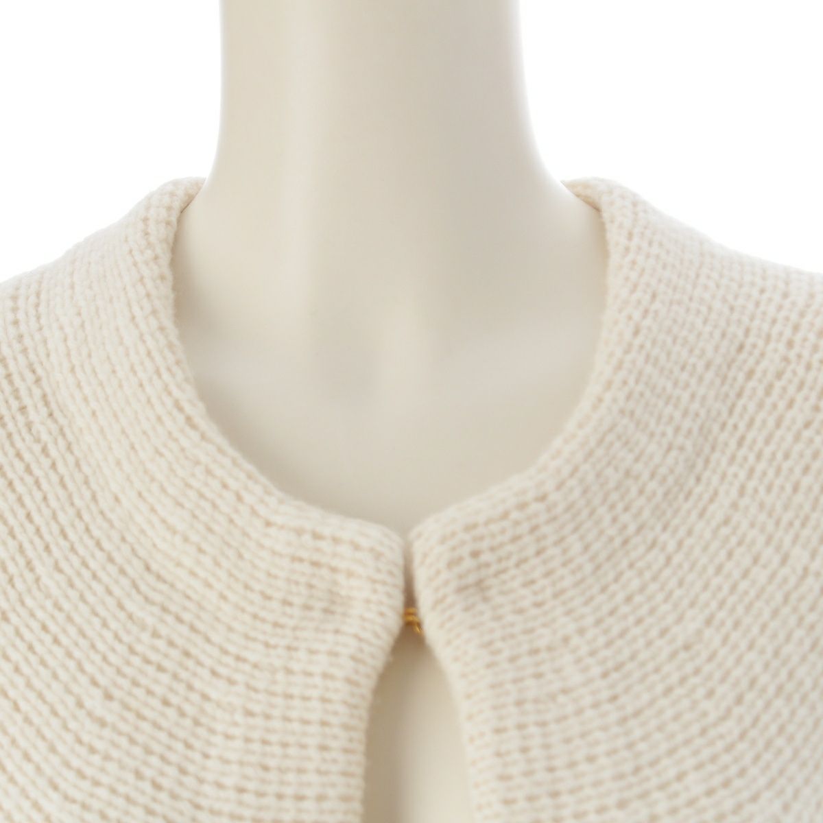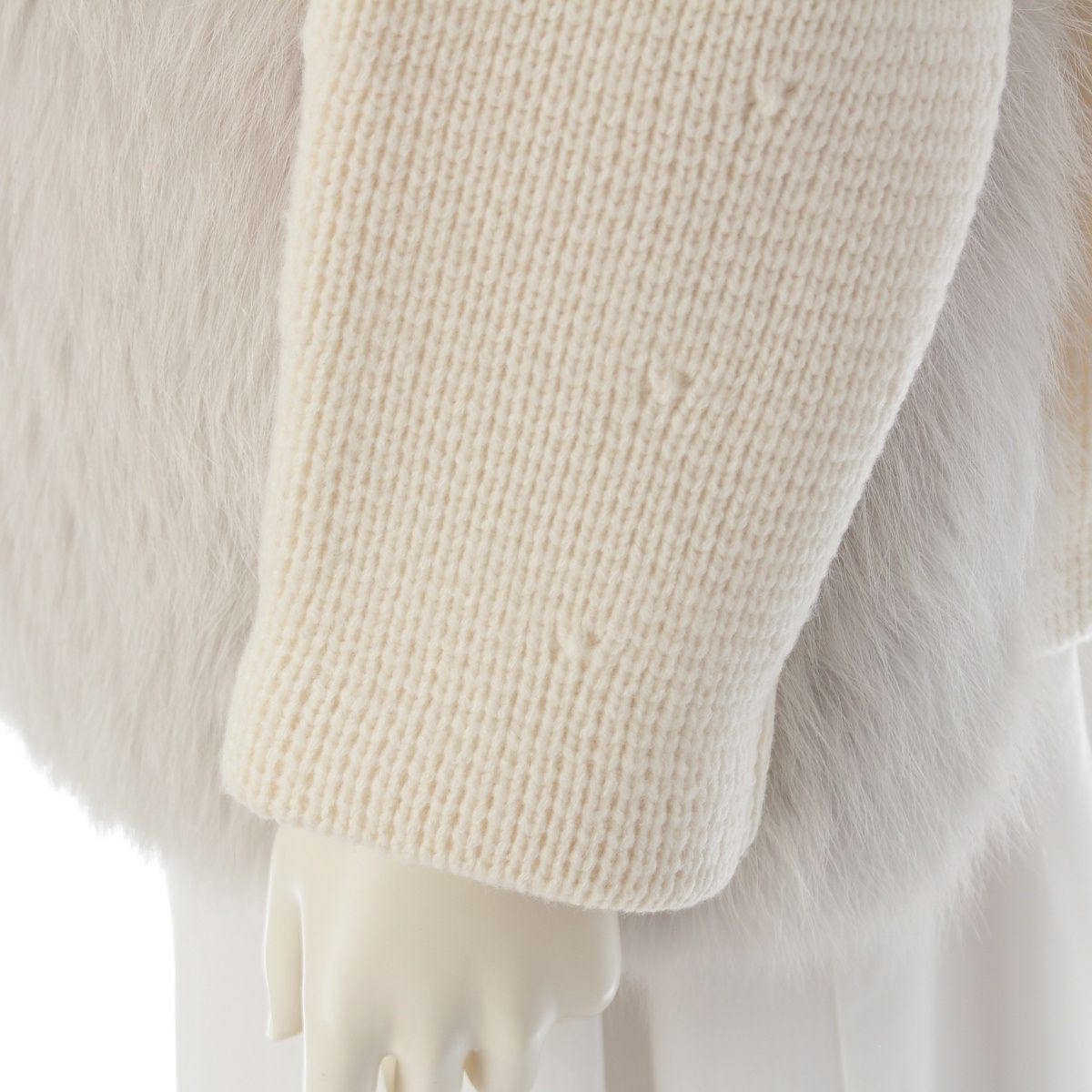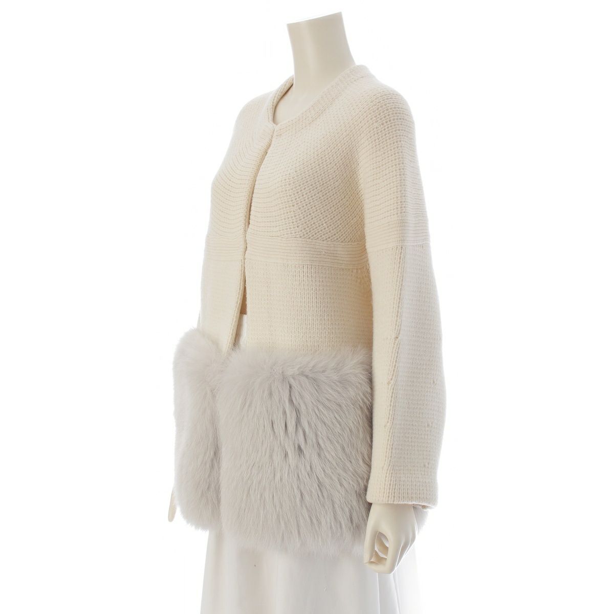 ドゥロワー ウール カシミヤ フォックスファーポケット ミラノ編み カーディガン 6515-199-0494 ホワイト