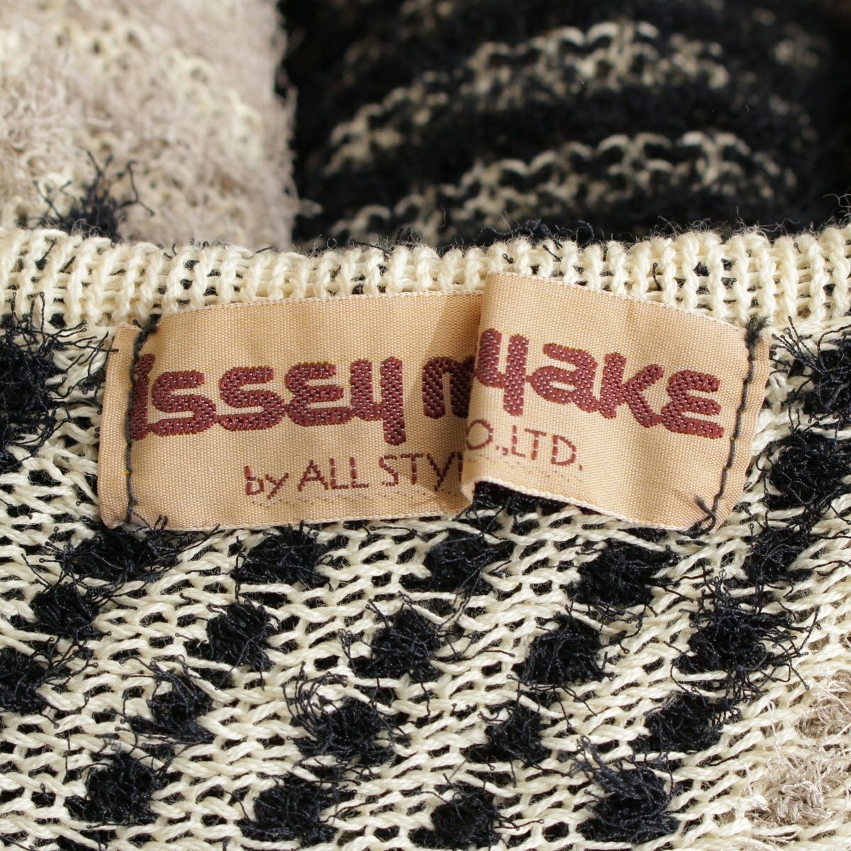 イッセイミヤケ 70s-80s コットン アクリル オールスタイル 4アームホール ロング カーディガン 羽織り ベージュ ブラック