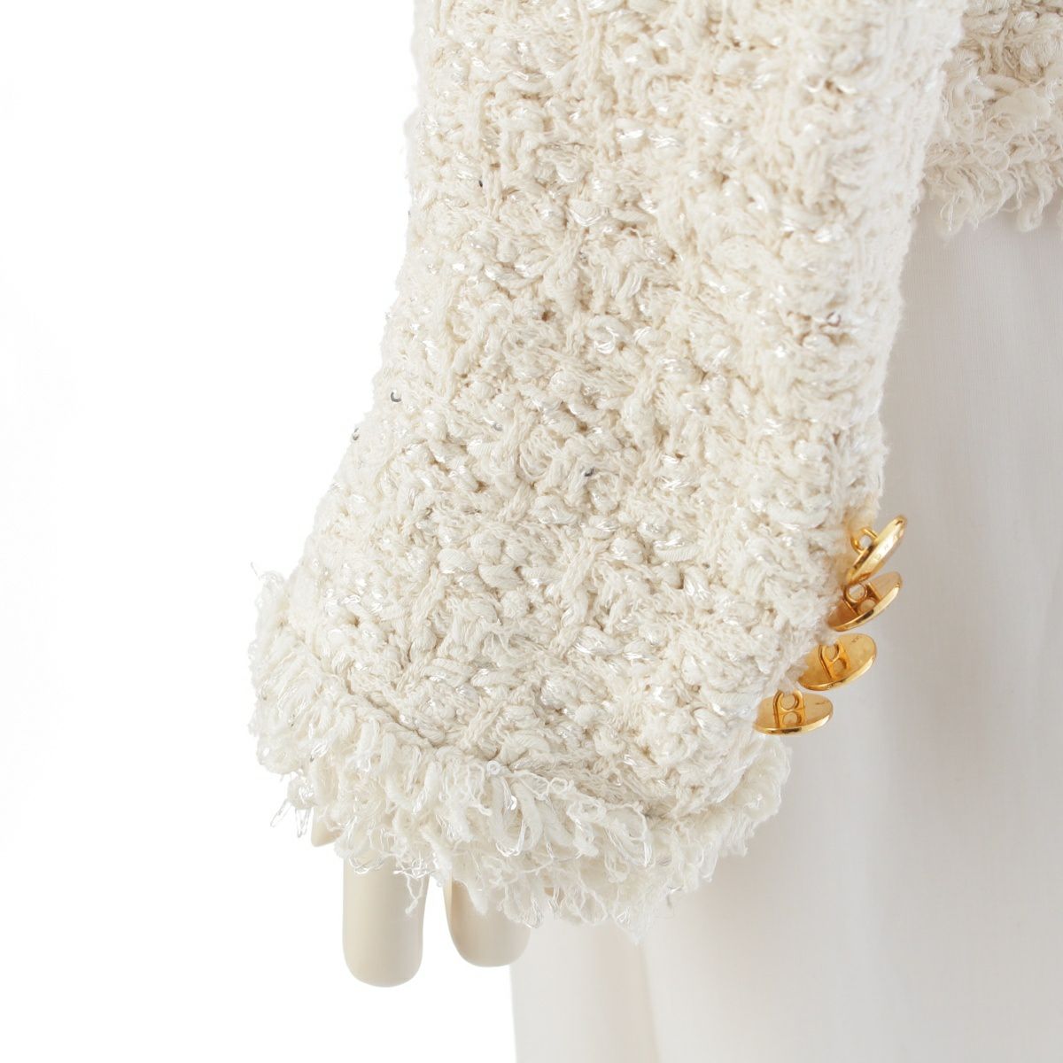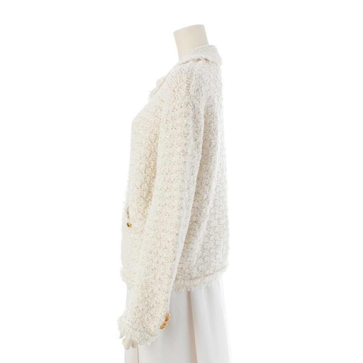 ドゥロワー ツイードスパンコール ニット カーディガン 6522-199-0758 オフホワイト